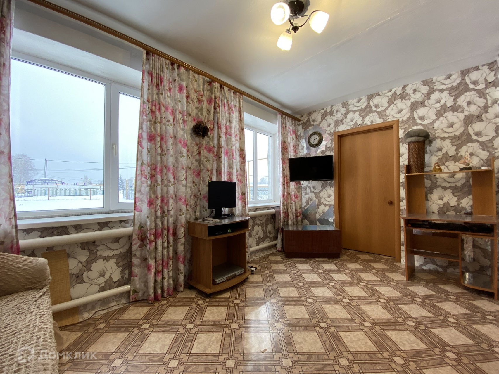 Окна с двойным стеклопакетом. На полу во всех комнатах постелен линолеум.
