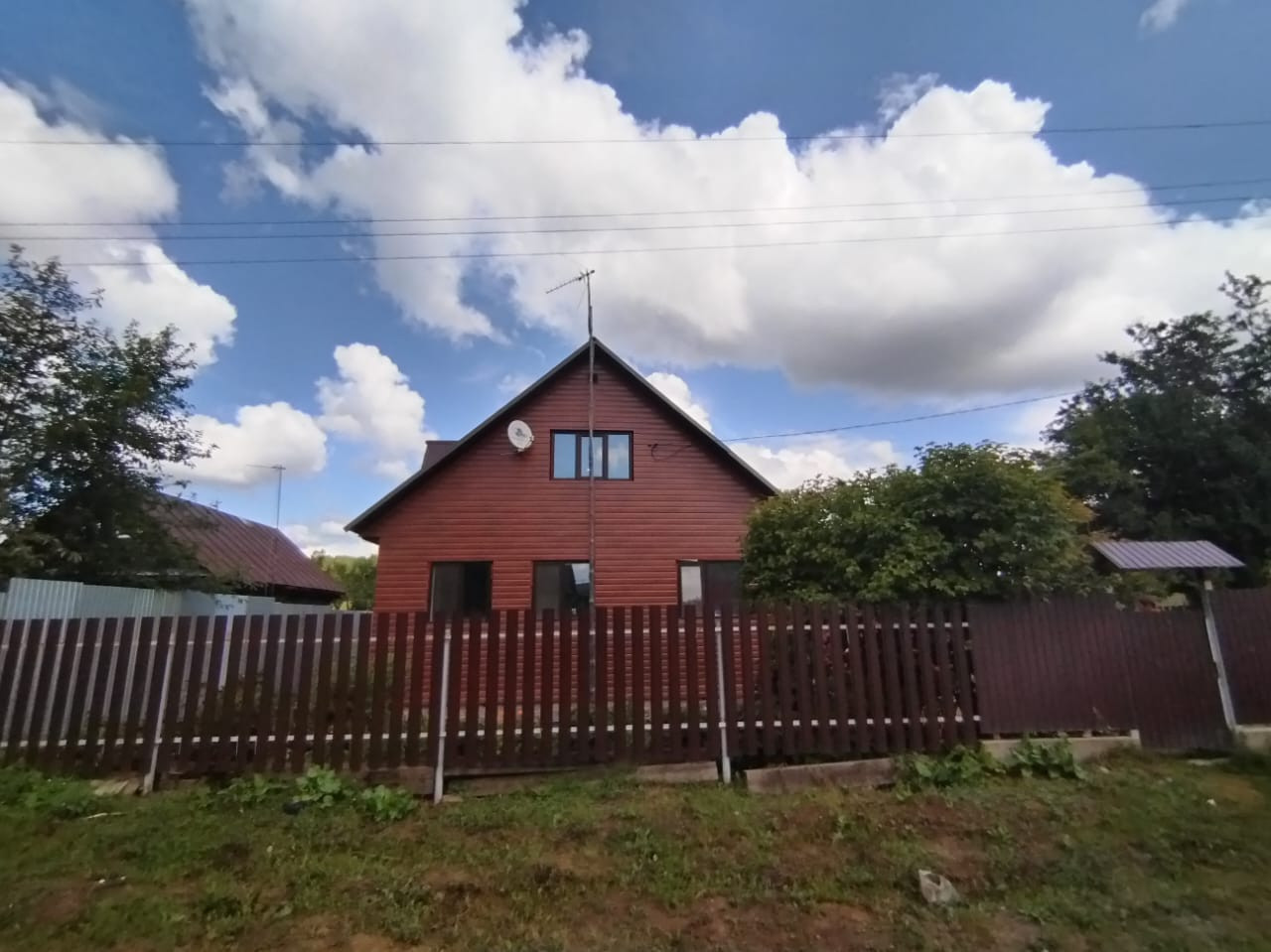 вода - колодец, электричество - подведено, отопление электрическое, зимой выходит за свет 4000-5000 рублей. Газ проходит по улице, точка подключения перед домом