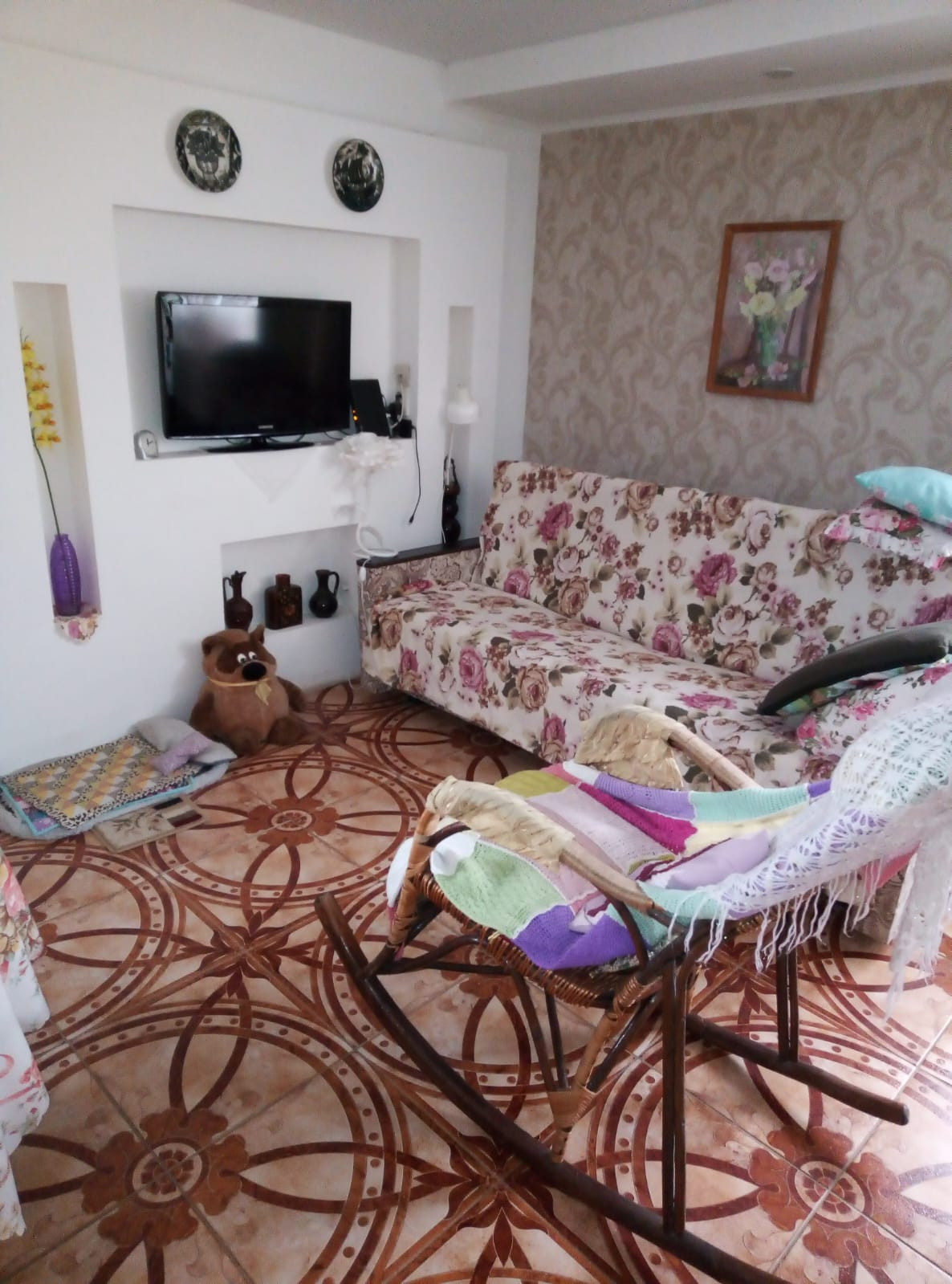 По всем комнатам постелен ламинат , в доме натяжные потолки .
