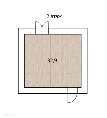 На втором этаже большая жилая комната площадью 32 кв.м с выходом на балкон .
