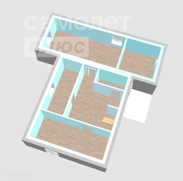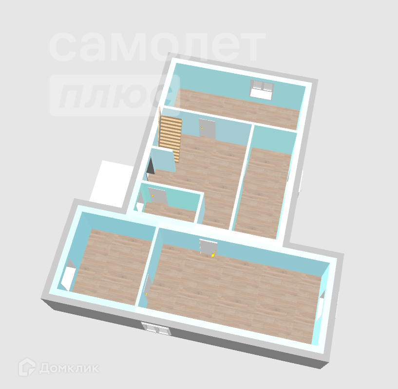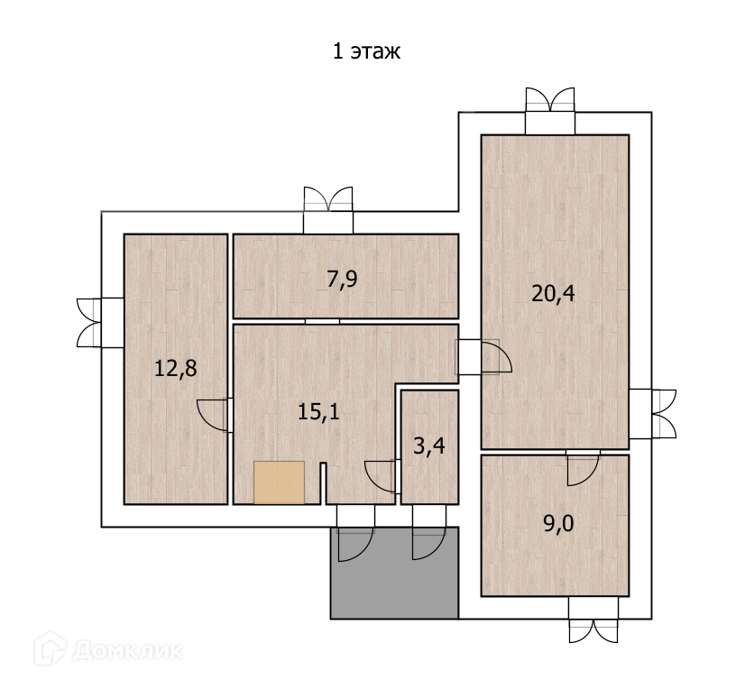 На первом этаже расположились три большие комнаты.