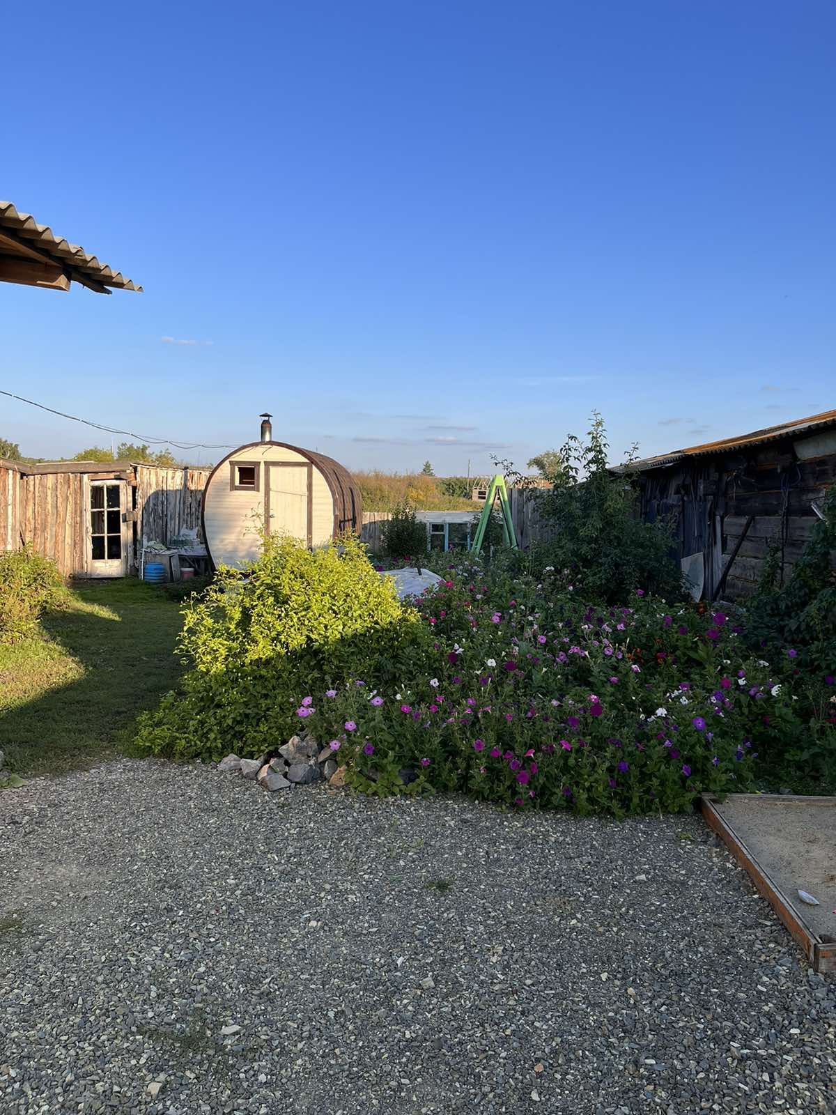 Во дворе новая банька-бочка. Ухоженный участок с теплицей. Спокойные и дружелюбные соседи.