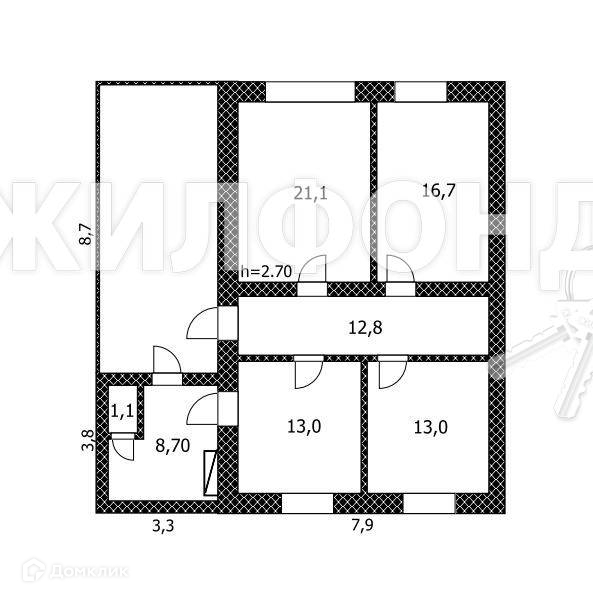 Жилая площадь 50.8 м2