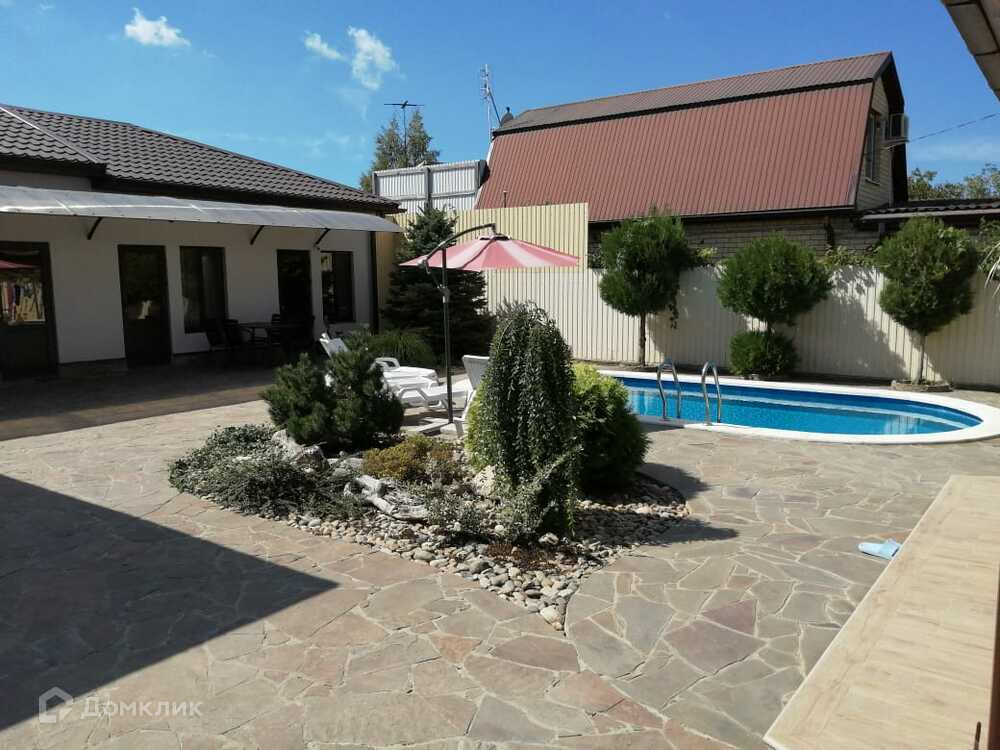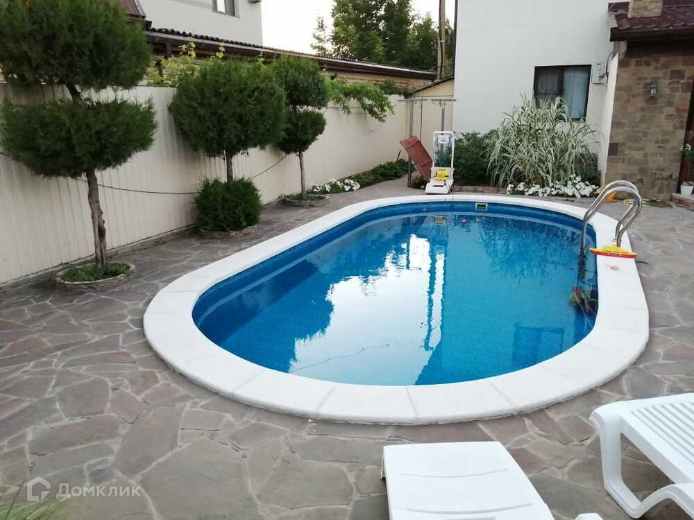Дом выполнен из светлого кирпича+керамзитобетонного блока, ленточный фундамент, забор металлопрофиль. Облагорожен двор, забетонирован заезд, клумбы, плодовые деревья, бассейн, гостевой дом, баня, кухня.