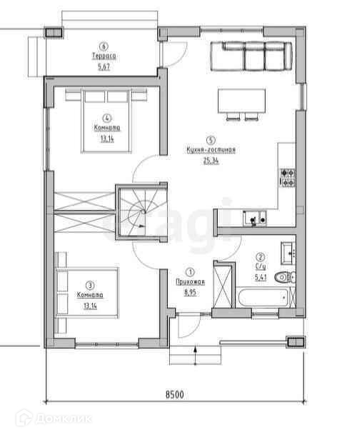 Грамотная планировка: 2 спальные комнаты, кухня гостиная с выходом на террасу, просторная прихожая, 1 санузел.