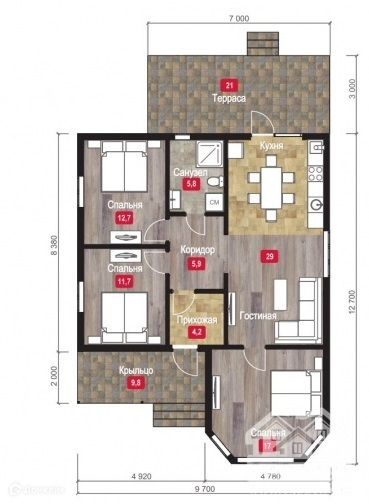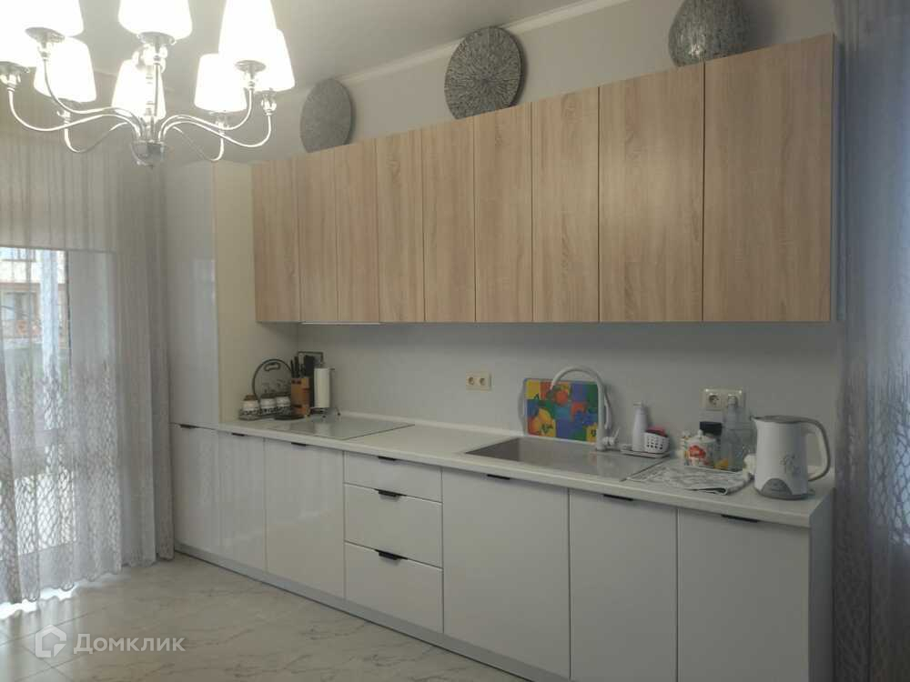 Объект №41576. Продается новый дом с хорошим ремонтом площадью 103,4 м2. Земельный участок 6 соток, назначение земли (ЛПХ). По фасаду забор, ворота, калитка из штакетника, по периметру сетка рабица, во дворе тротуарная плитка. Во дворе забетонирована площадка для автомобиля. Фундамент дома ленточный, стены из керамзитоблока, утеплен, облицован декоративной штукатуркой. Крыша из металлочерепицы, утепление перекрытия минеральная вата. В помещении: прихожая, большая кухня-гостиная, 3 спальни, санузел и большая крытая терраса. Сделан качественный ремонт, в гостиной и санузле на полу плитка, в спальнях ламинат. Теплый пол везде по плитке, в спальнях радиаторы. Все коммуникации заведены в дом: электричество 15 кВт, электрическое отопление, вода скважина, канализация септик, ТУ на Газ. В доме сделан качественный ремонт, остается мебель и техника.