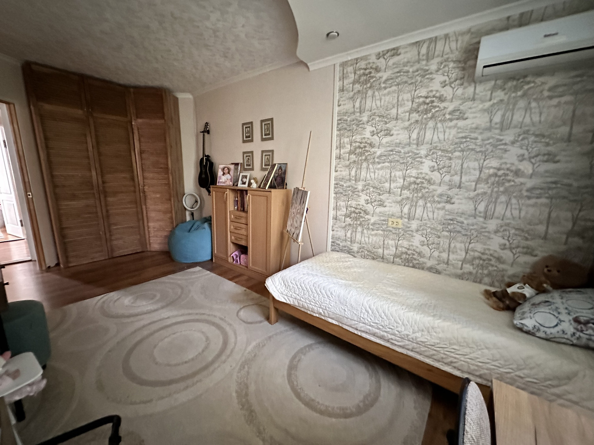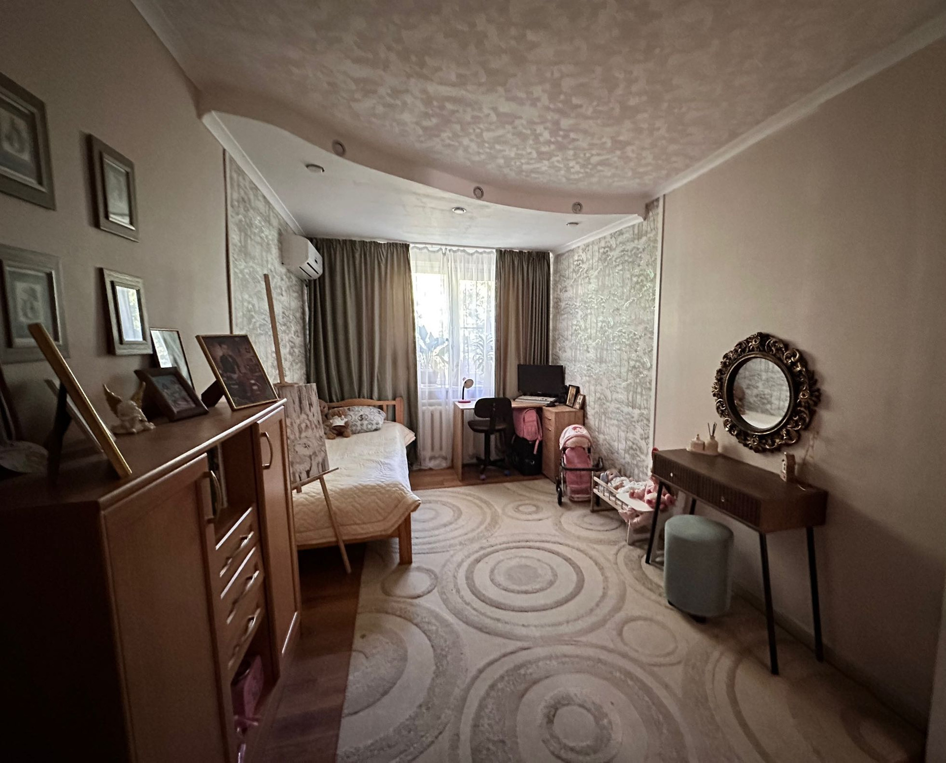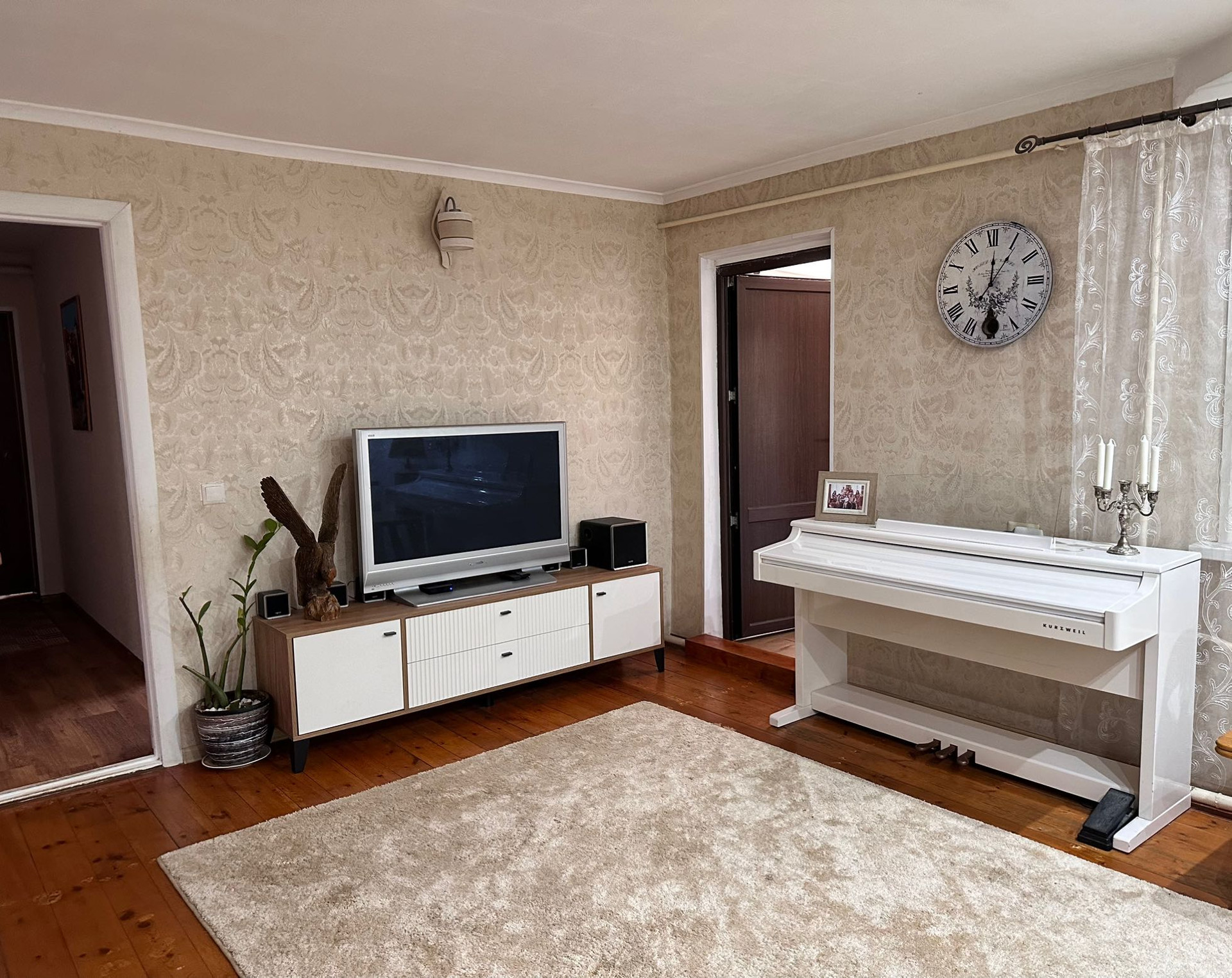 Первый этаж - 4 спальни, кухня, гостиная, санузел и столовая. Все комнаты - раздельные. Большая котельная - кладовая. В доме остается практически вся мебель и техника.