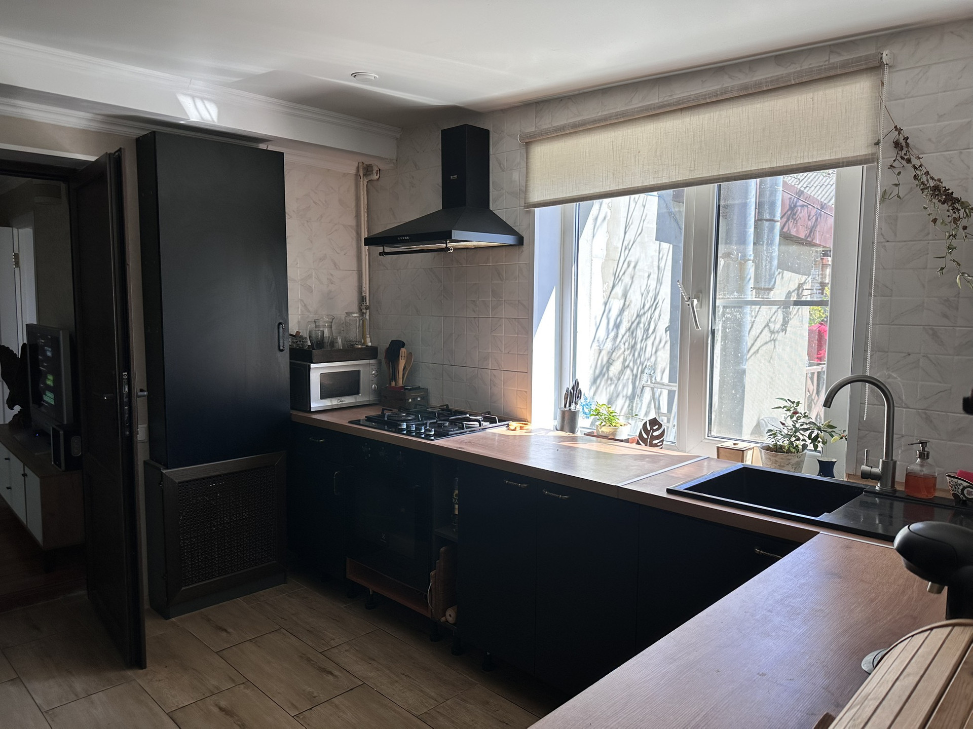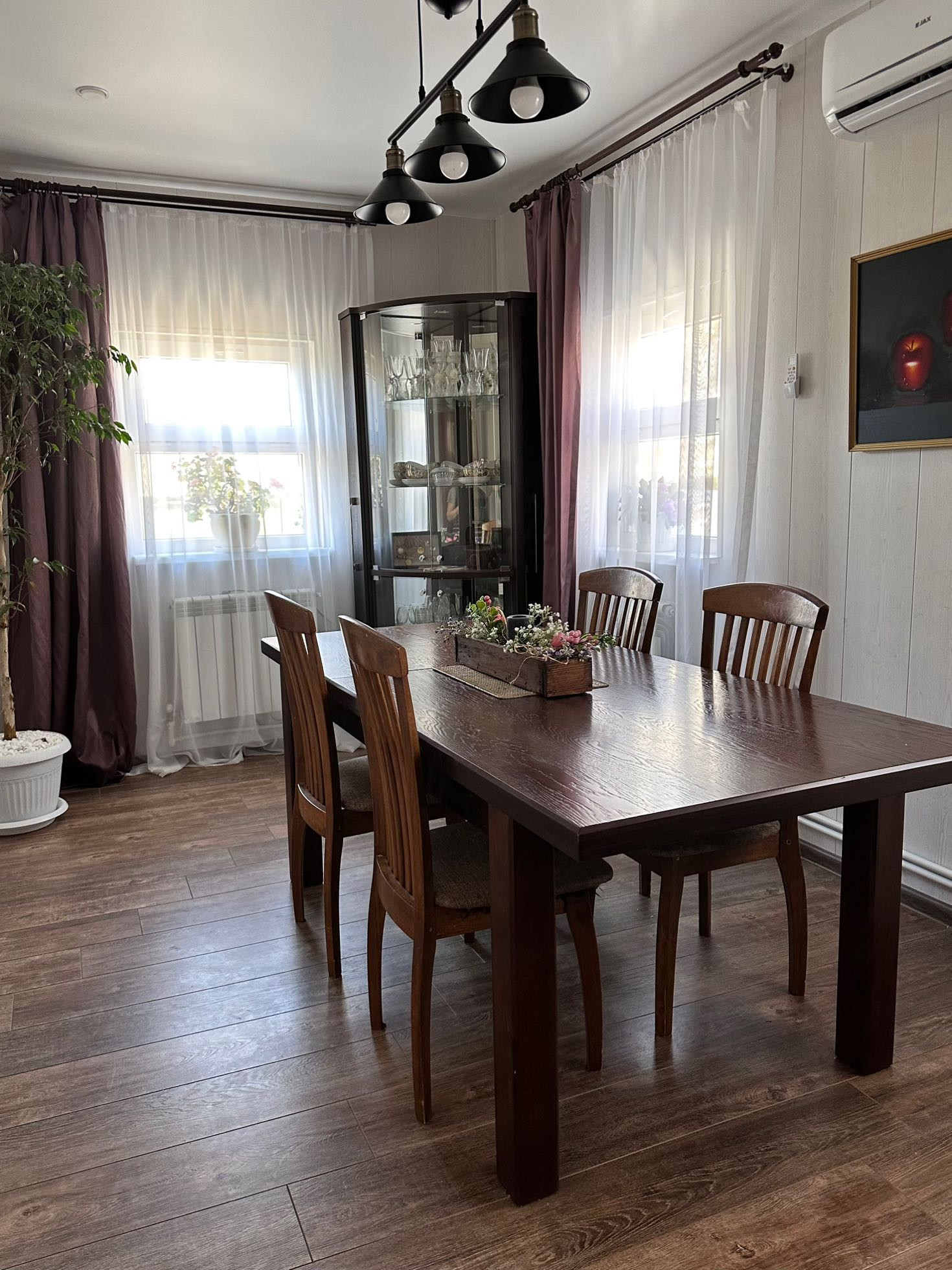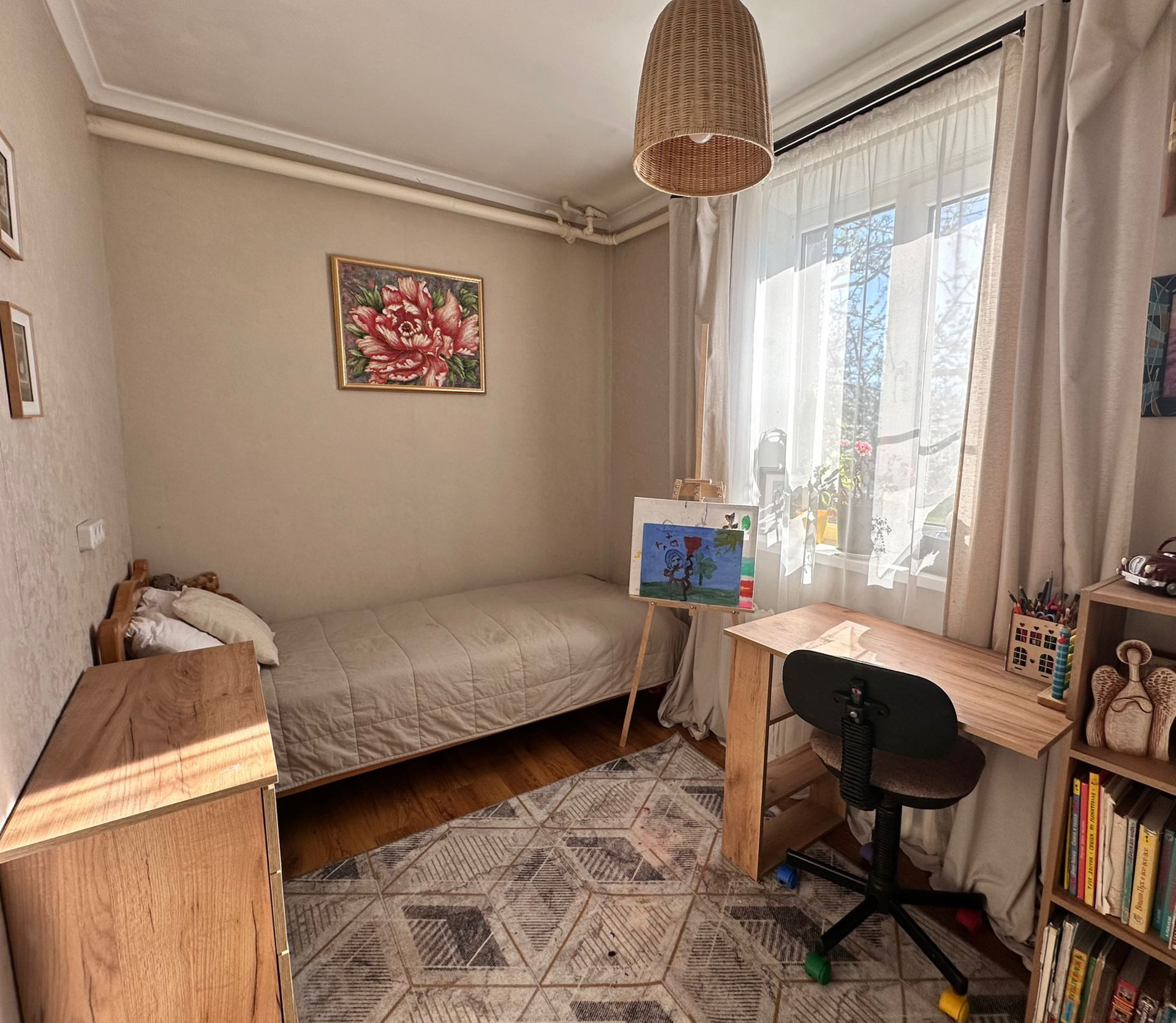 Первый этаж - 4 спальни, кухня, гостиная, санузел и столовая. Все комнаты - раздельные. Большая котельная - кладовая. В доме остается практически вся мебель и техника.
