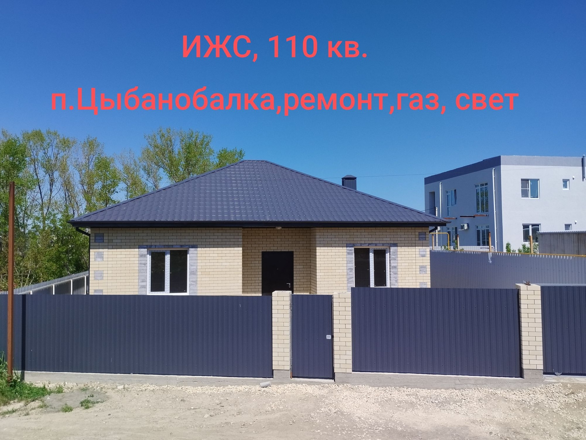 Продается новый кирпичный дом с ремонтом в пригороде Анапы село Цибанобалка улица Заречная 61 .Общей площадью 110 кв. метров. В доме три изолированные комнаты, котельная- гардеробная, большой санузел, просторная кухня-столовая с выходом на террасу . В доме смонтирован теплый пол, в спальнях  радиаторы.ГАЗ, Свет 15 кВ. скважина 25 метров, канализация септик (ЖБ кольца),  забор по периметру, откатные ворота. Назначение земли ИЖС. Дом постоен из качественных материалов, есть поэтапный фотоотчет. В шаговой доступности школа,садик магазины,остановка общественного транспорта. В посёлке есть все для комфортного проживания. Возможна ипотека от Сбербанка. Льготная и сертификаты не подходят. Собственник.