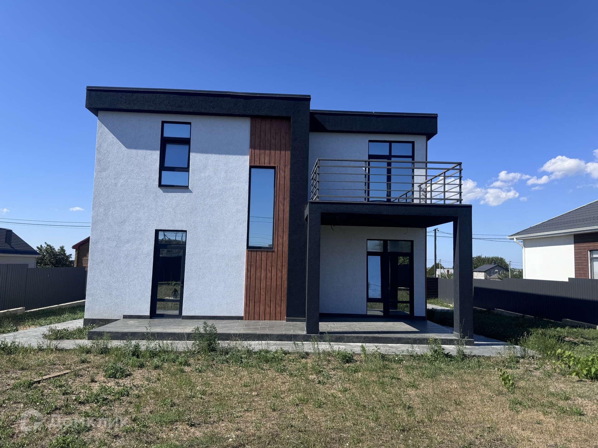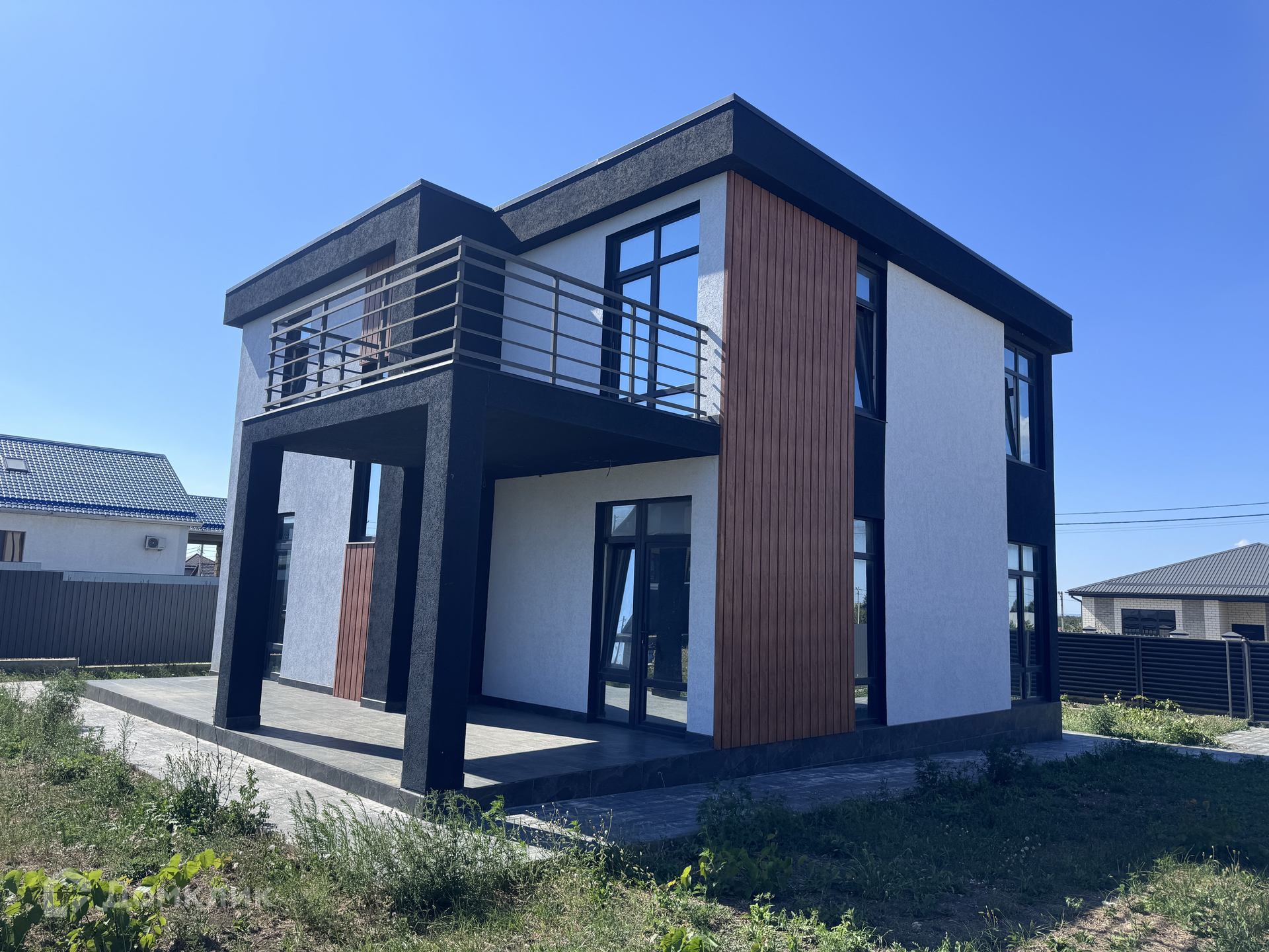 ID-42547. Продается новый дом в стиле хай-тек  пригороде Анапы п. Цибанобалка. Дом построен с соблюдением всех строительных и документальных норм в январе 2023 года. 180.9м2 2 этажа. На 1-м этаже: кухня-гостиная 28.7м2 с выходом на частично крытую террасу 22.2м2, комната 13.6м2, совмещенный санузел 5.9м2, котельная  5.3м2 с отдельным входом. На 2-м этаже: 3 комнаты 19м2, 13.8м2 14.5 м2 - с выходом на открытую террасу-балкон, санузел совмещенный 8м2. Качественная предчистовая отделка: разведена электрика с установкой розеток и выключателей, разведены трубы под сантехнику и отопительное оборудование. Отопление на 1-м этаже по всей площади - теплый пол, на 2-м - батареи. Ровная стяжка, штукатурка, все перекрытия - монолит. Подключена вода (скважина - 40м), канализация - септик, свет 15 кВт - 3 фазы, центральная канализация, вода и газ (подземка) - по фасаду участка.