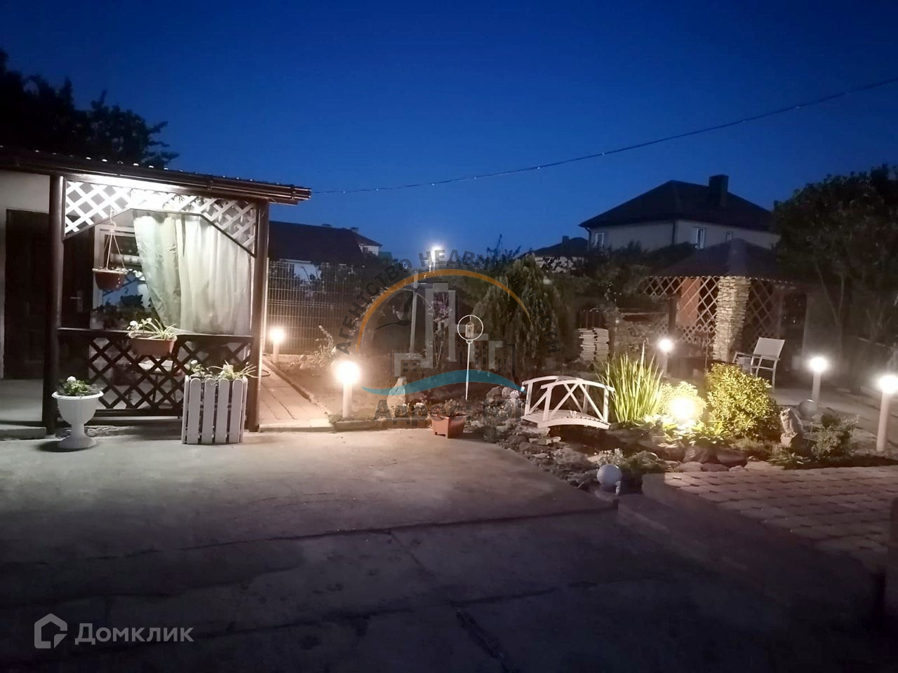 Дворовая территория обустроена:  большой сад с плодовыми деревьями, навес. Баня, бассейн. Гараж
