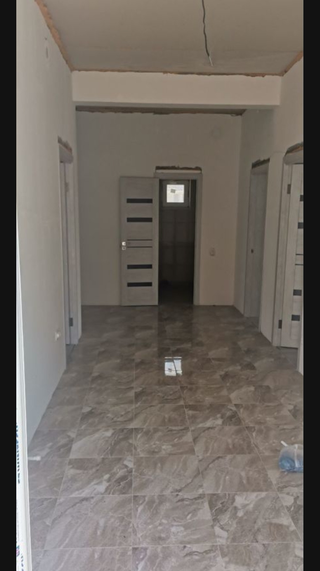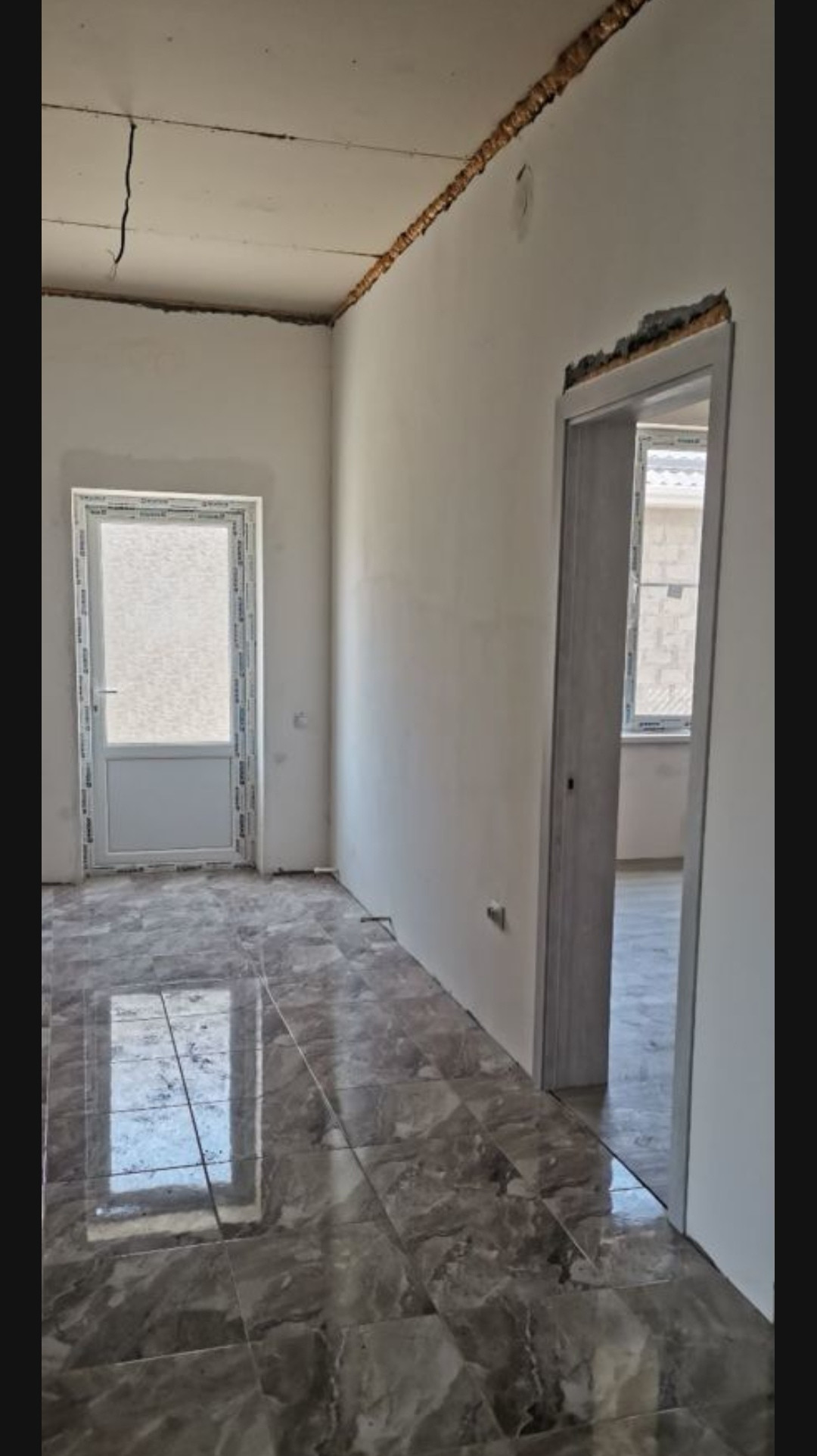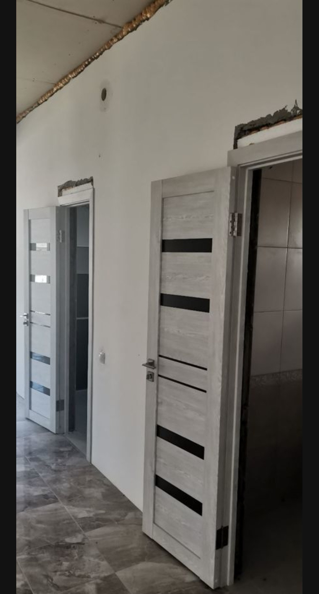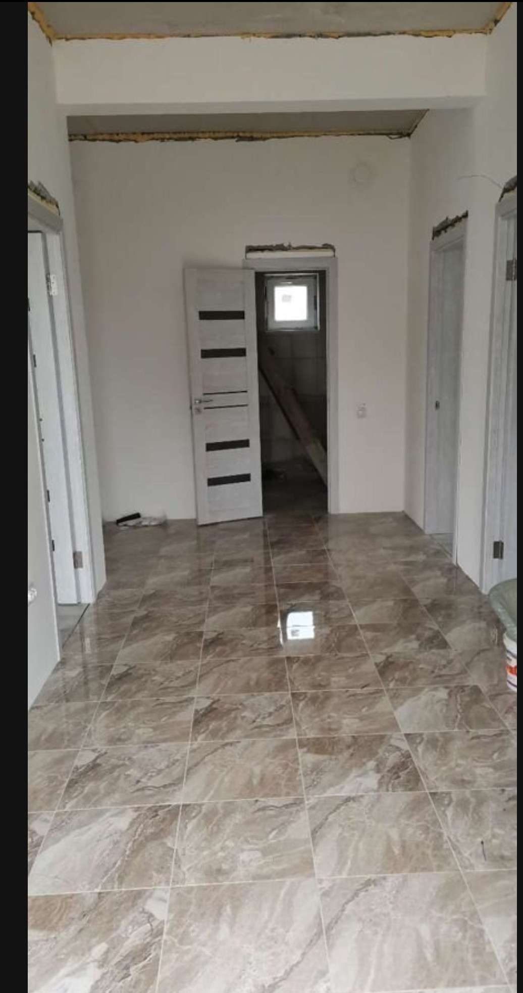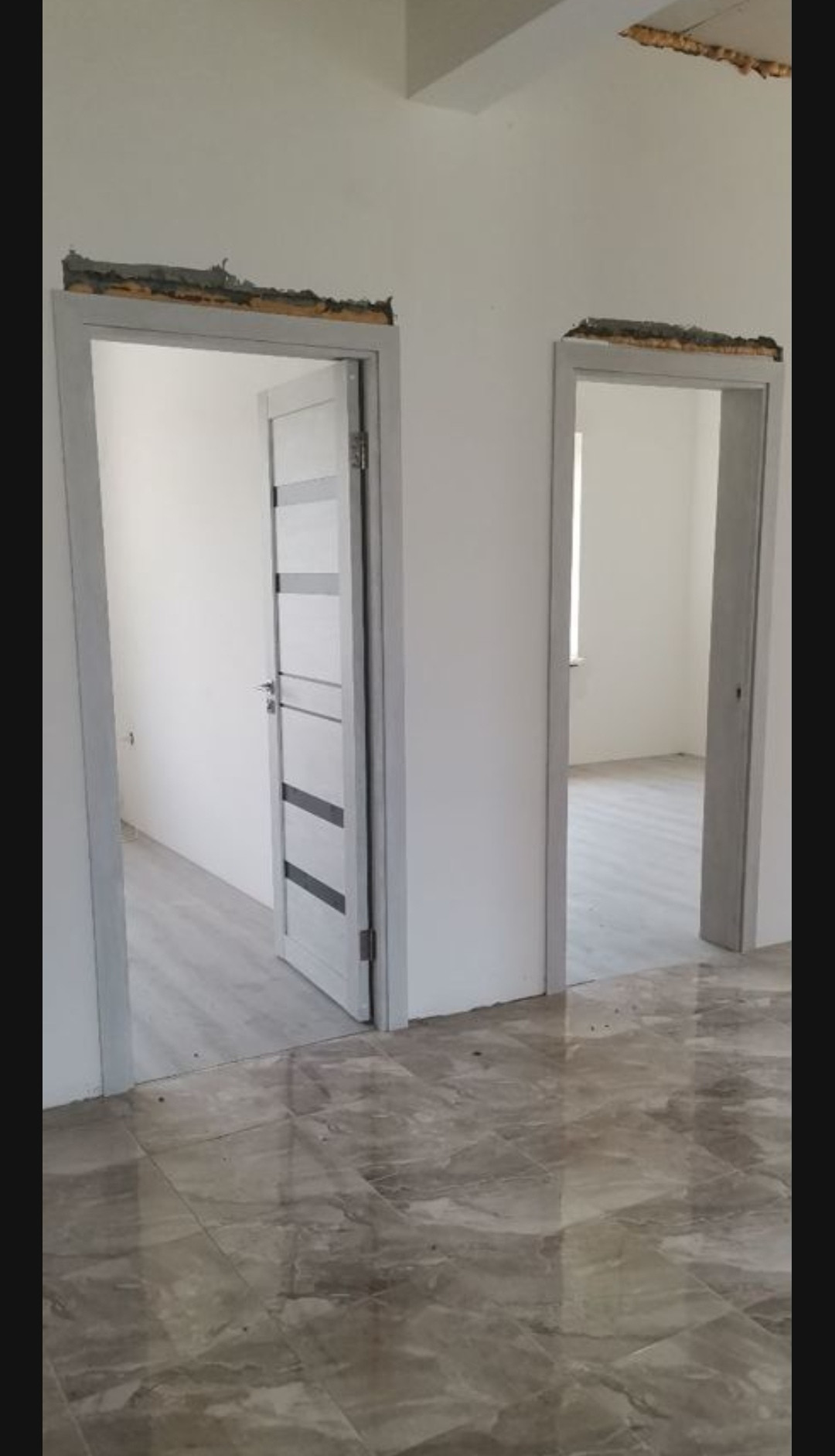 Сплит системы, на полу ламинат и кафель (везде по периметру дома проведён тёплый пол), межкомнатные двери.