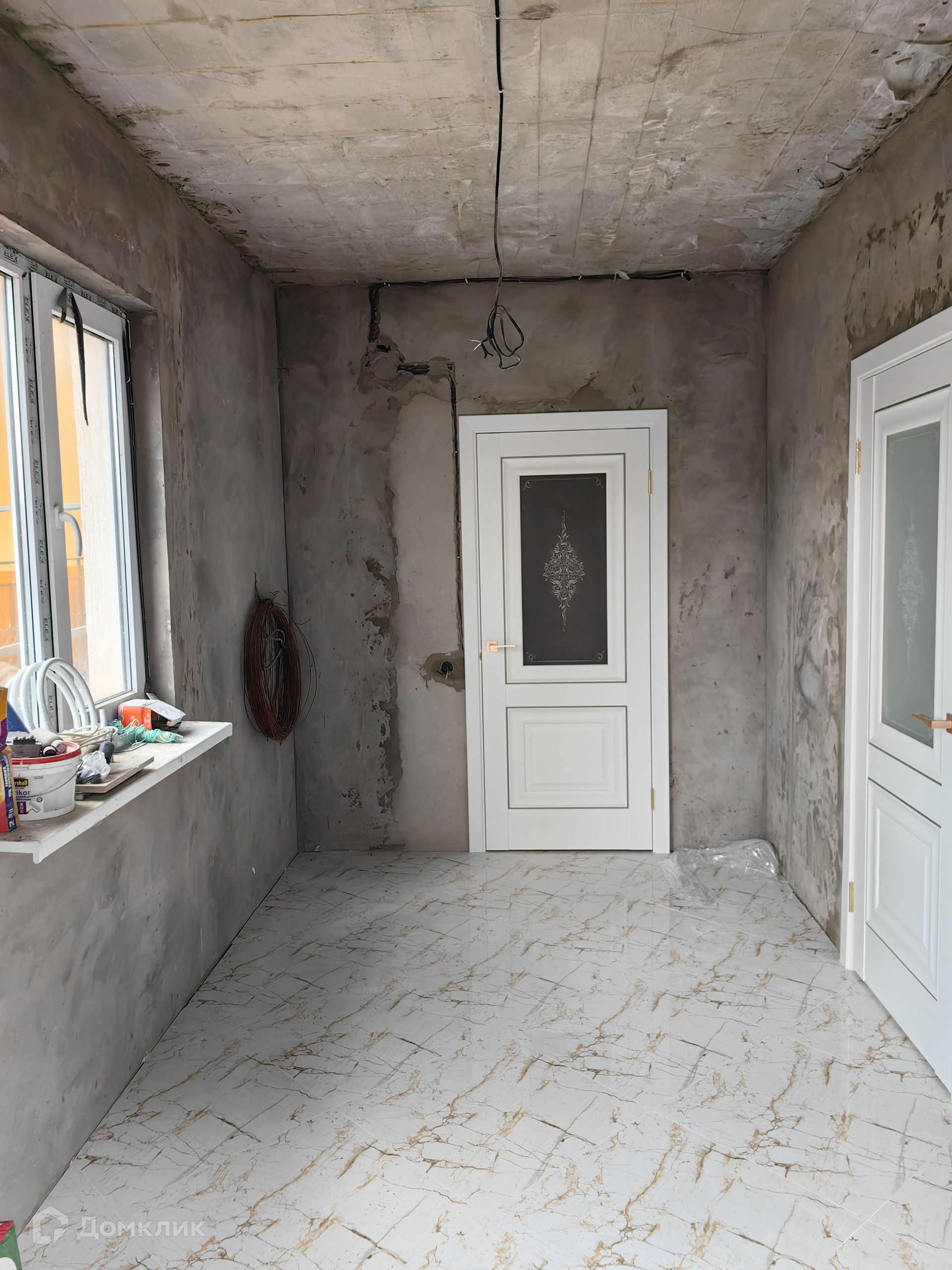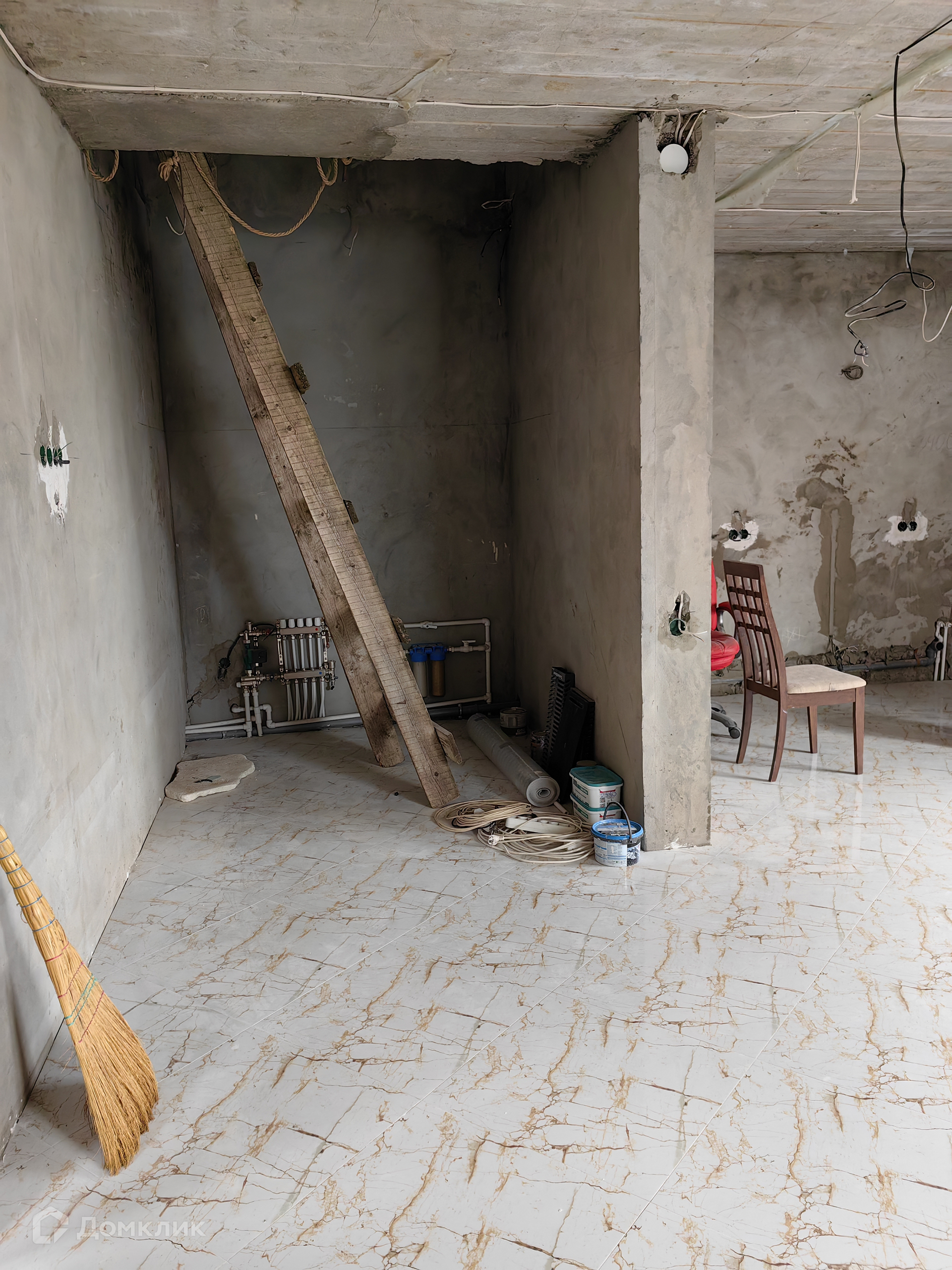 2 пололвина: начат ремонт, 1 этаж: прихожая, сан/узел, кухня-гостиная, 2 этаж: 4 спальни.