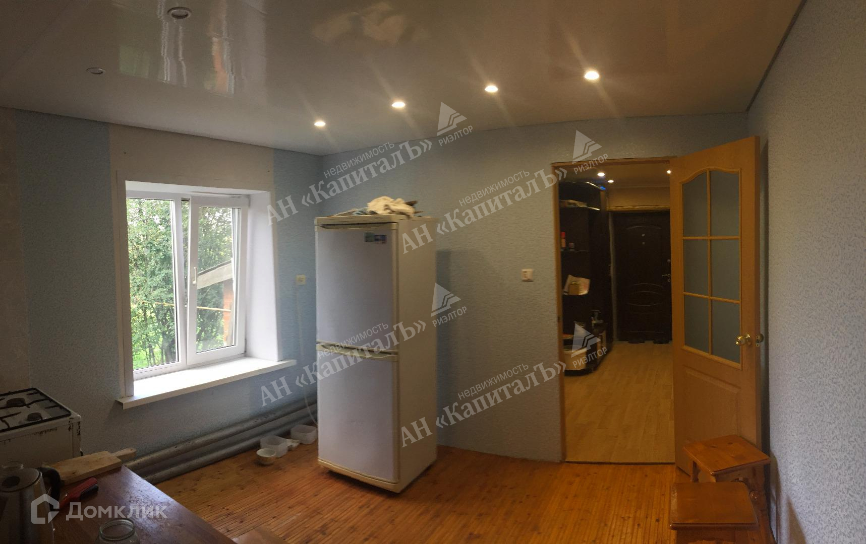 В доме санузел раздельный с душевой кабиной, пол плитка..Потолки в туалете , кухне и коридоре натяжные. В комнатах потолок обои под покраску.. На полу в зале, коридоре линолеум, в спальне крашенная ДСП ( древесно-стружечная плита), на кухне наборный из доски (половая рейка). Окна стеклопакеты во всех комнатах. Газовый котел находится отдельно в пристрое к дому.. Имеется огромная светдая летняя веранда с выходом на заднюю часть двора.