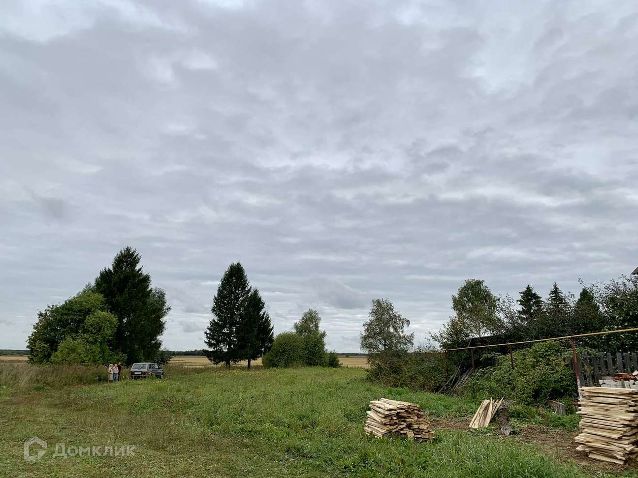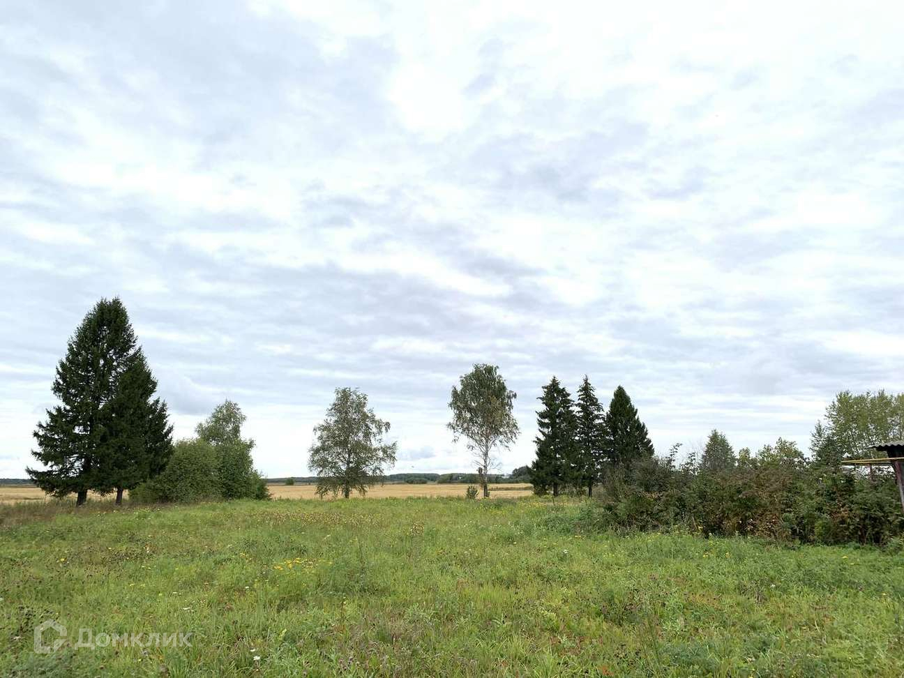 Расположен на окраине ( что является плюсом, т к помимо участка много пространства вокруг ) Очень чистый , аккуратный участок без сорняков и ненужной растительности. Сзади участка располагается поле, рядом есть несколько елей и берез.