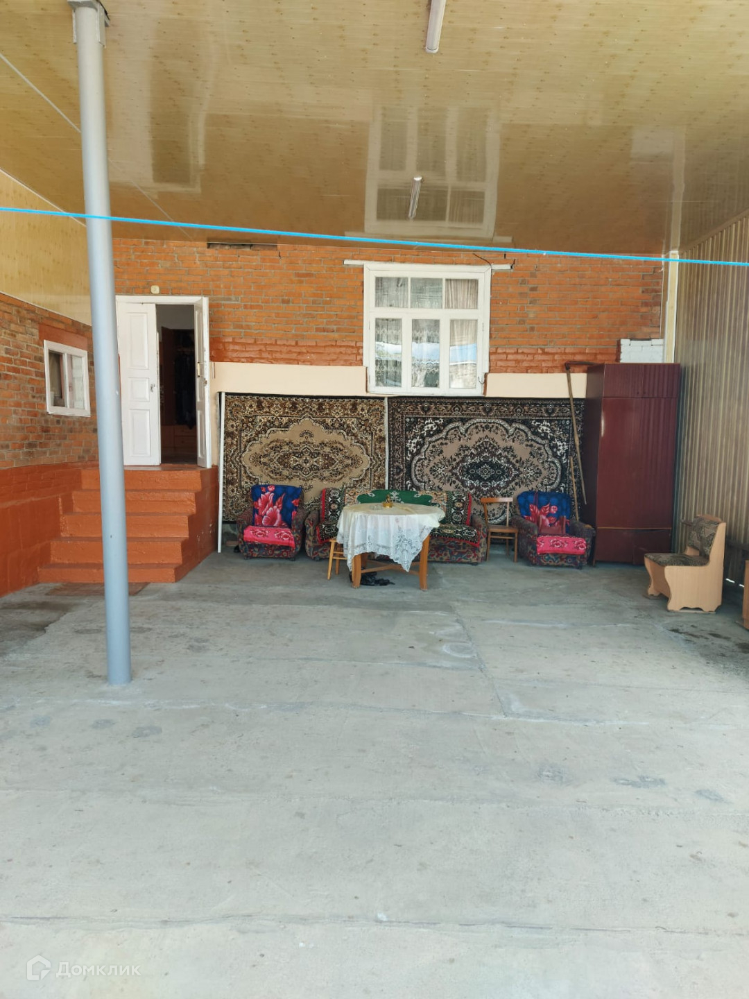 На полу линолеум, стены побелены. Во дворе имеется сарай.