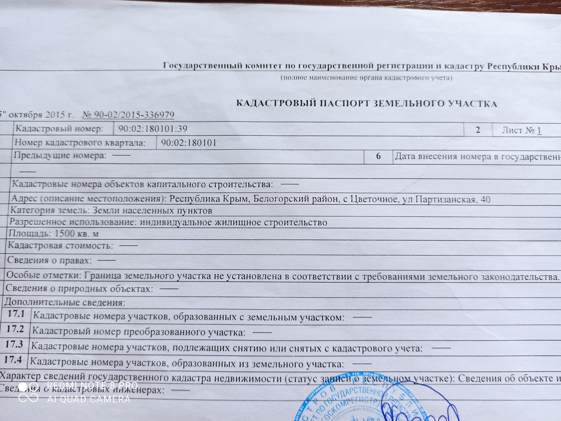 Площадь участка 15000 сот.