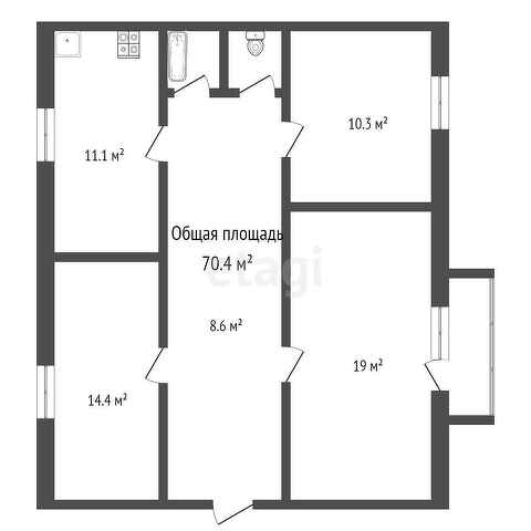 Общая площадь 70.4 м2