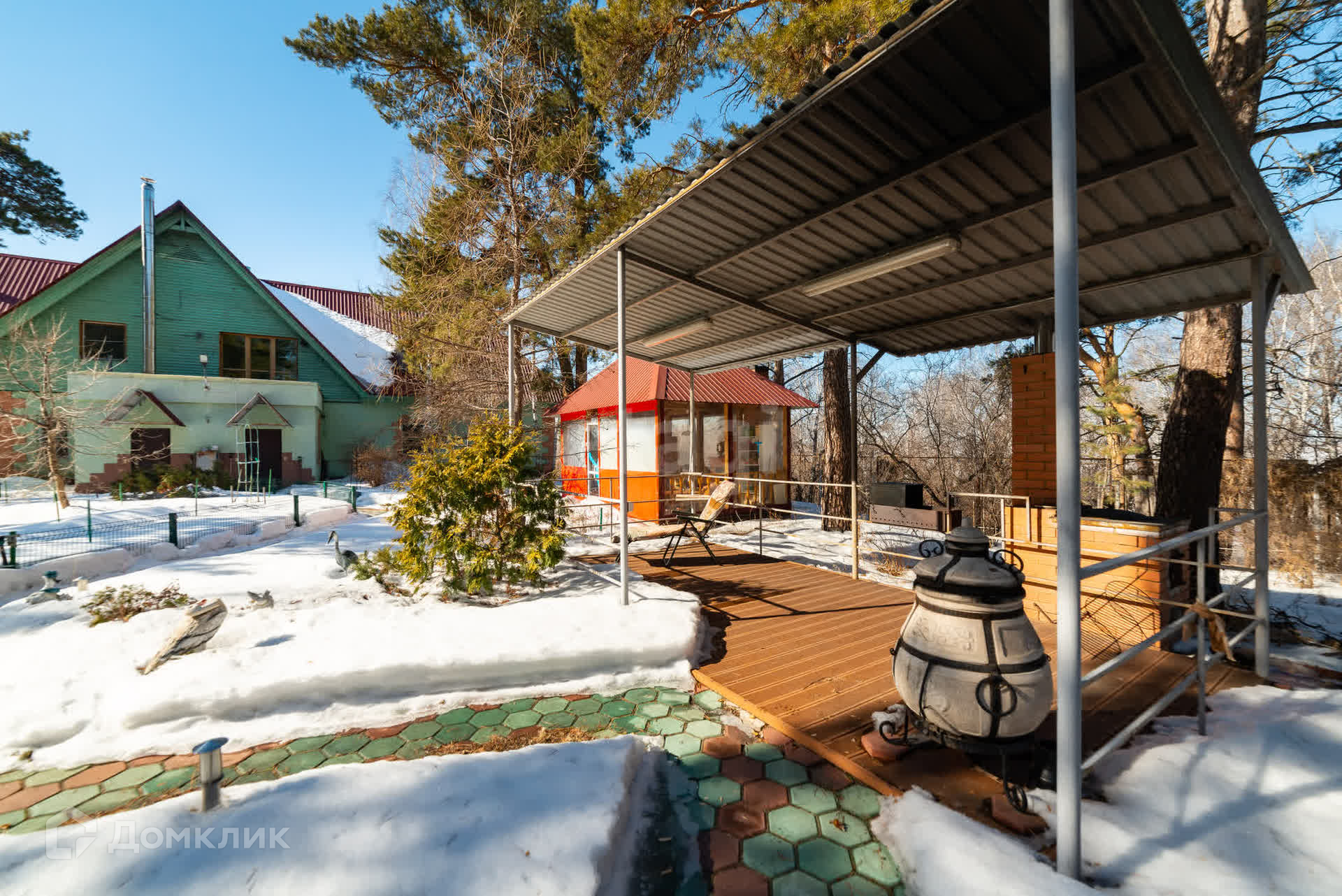 Участок двухуровневый. На первом высоком уровне находится дом, баня,беседка ,две мангальных зоны, детская площадка, поле для футбола, бадминтона и т.д. На нижнем уровне участка лог ( небольшая речка), гараж на две машины, навес ещё для одной машины. С участка есть отдельный спуск к пляжу реки Тобол. Участок огорожен железным забором,ворота открываются автоматически.