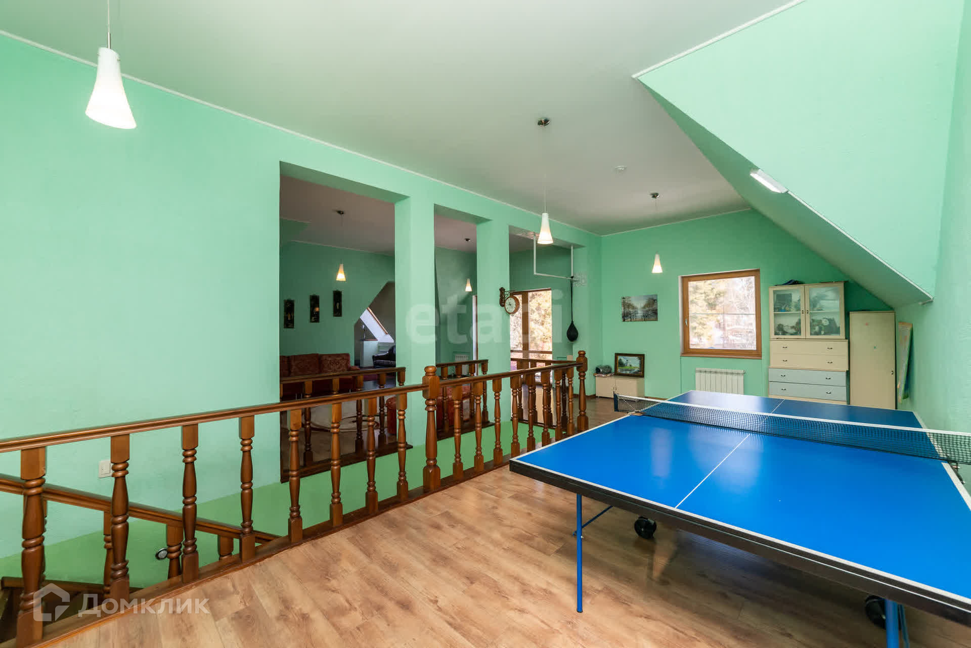 На втором этаже зона для настольного тенниса, кабинет, две спальни .
