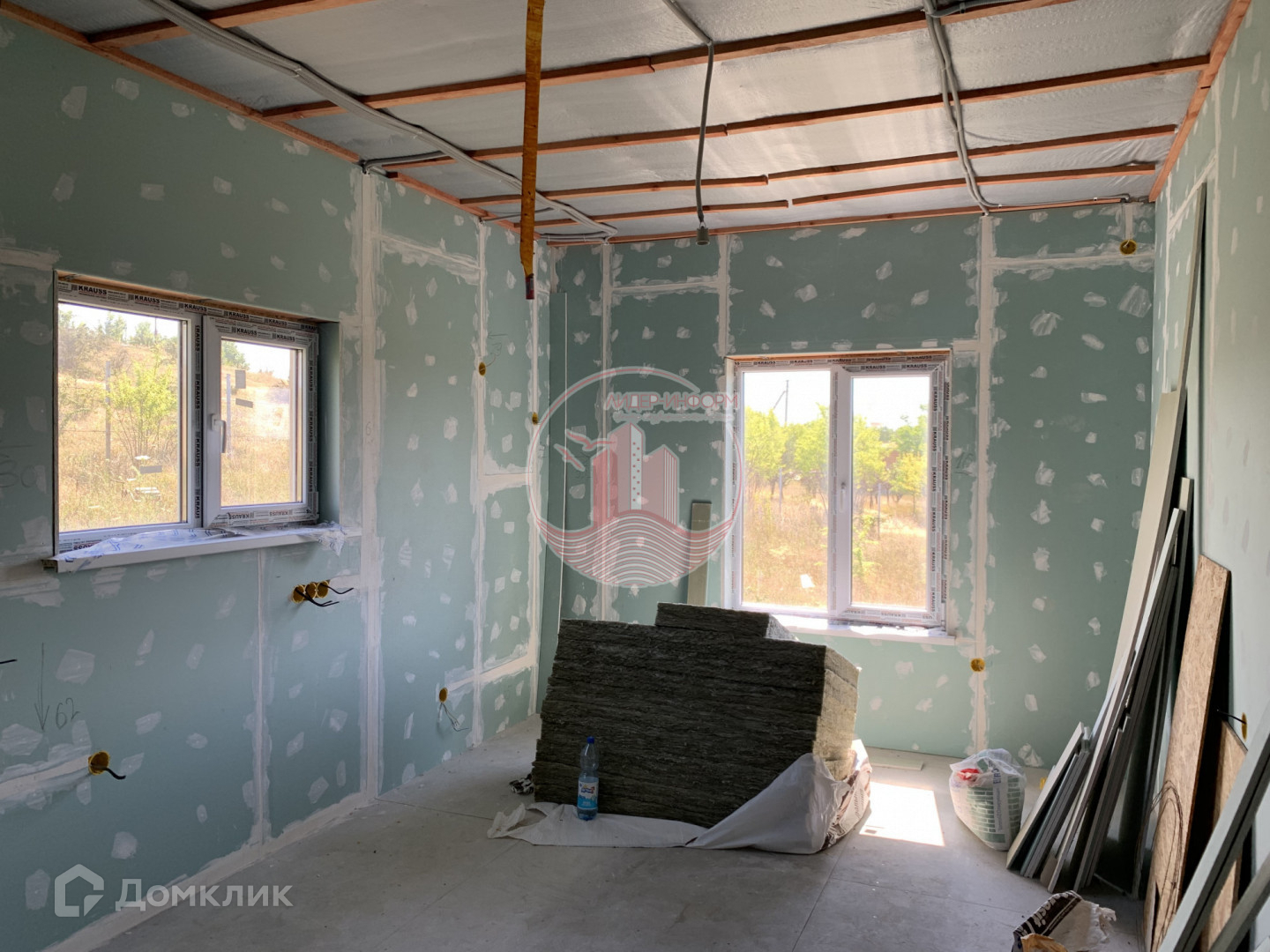 В доме частично стены отделаны гипсокартоном. Везде разведена электропроводка.