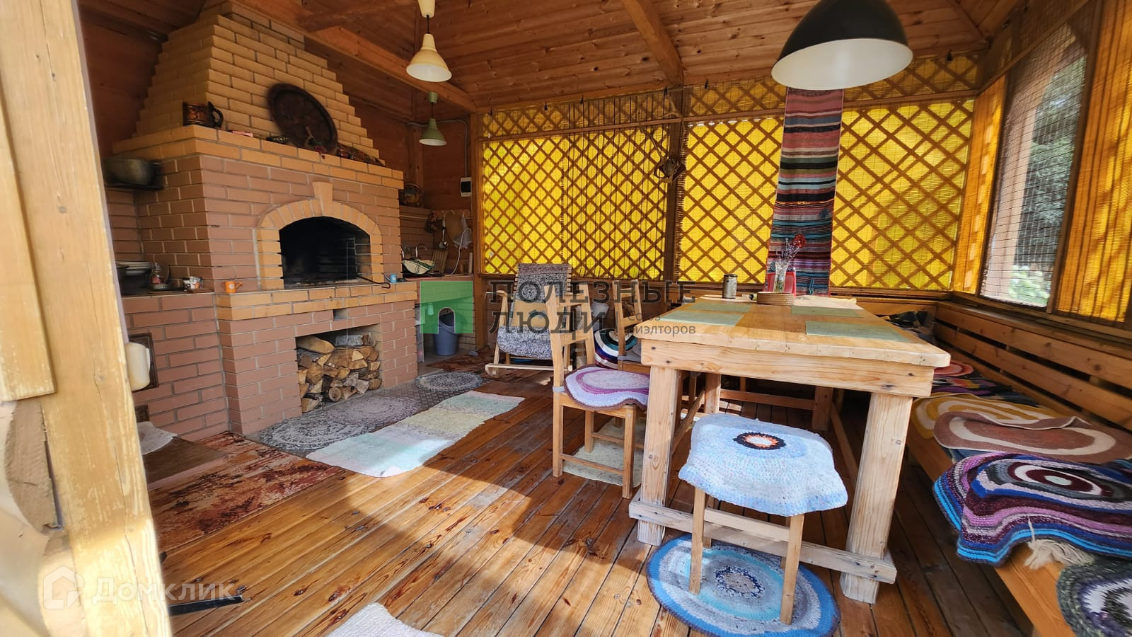 Крытая беседка из бруса (4,5м x3,5 м) для отдыха 10-12 человек с зоной барбекю, печкой для казана, есть водоснабжение (вода с подогревом);