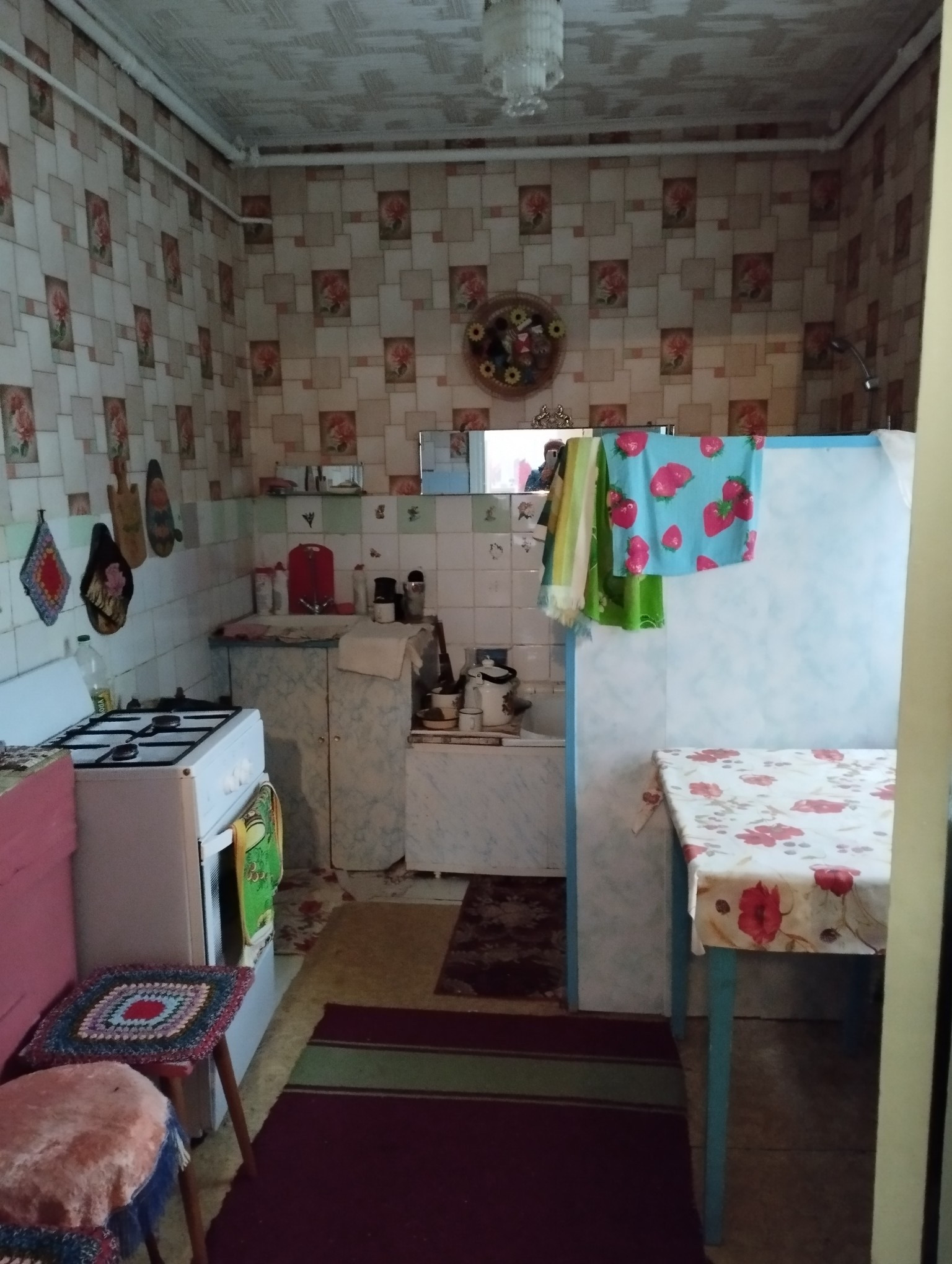 В доме один этаж,санузел совмещённый,отопление газовое,подведены всё комуникации,три спальни, большой светлый зал,коридор, пластиковые окна. Дом очень тёплый и светлый,имеются хоз постройки. На территории находится отапливаемая летняя кухня, два подвала, курятник,сарай для хранения инвентаря,гараж.Дом с очень хорошим месторасположением.Развитая инфраструктура в шаговой доступности. магазин, больница, садик, аптека, школа.