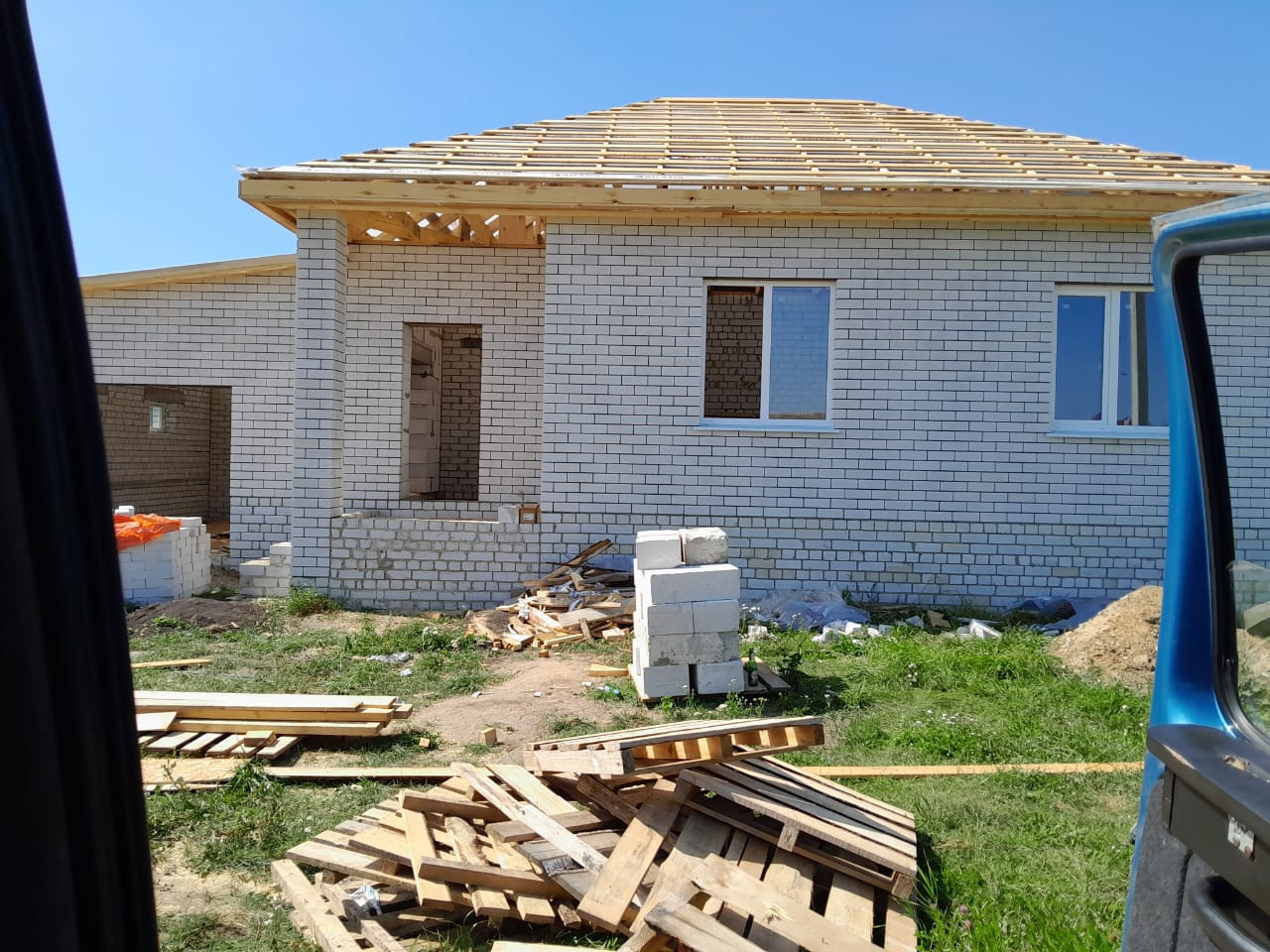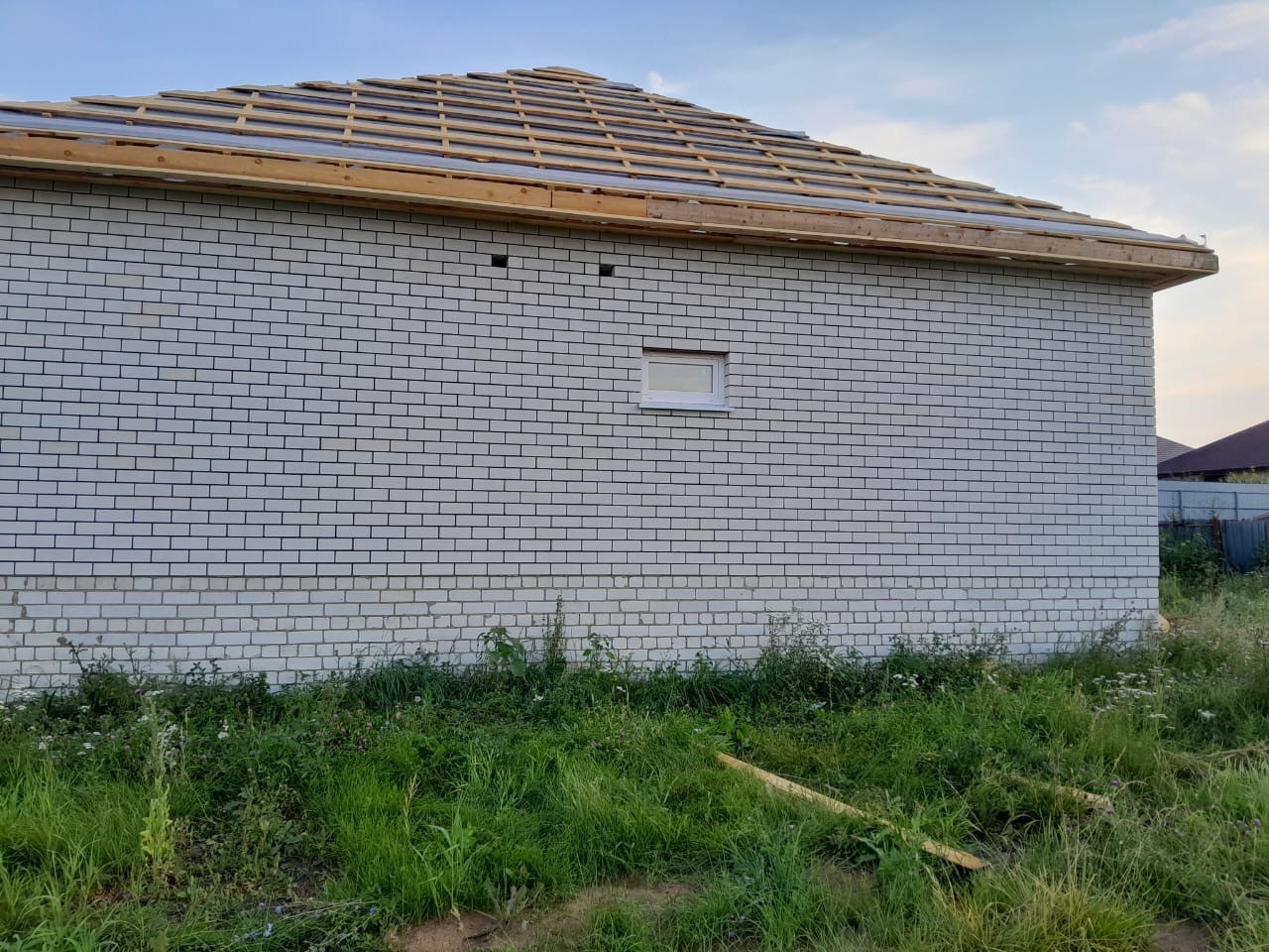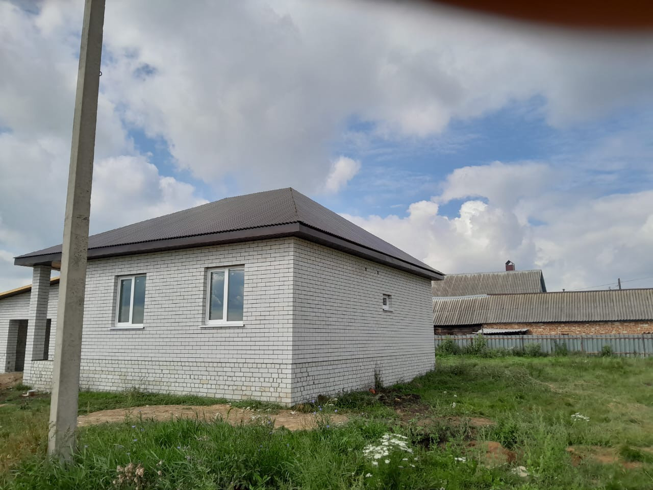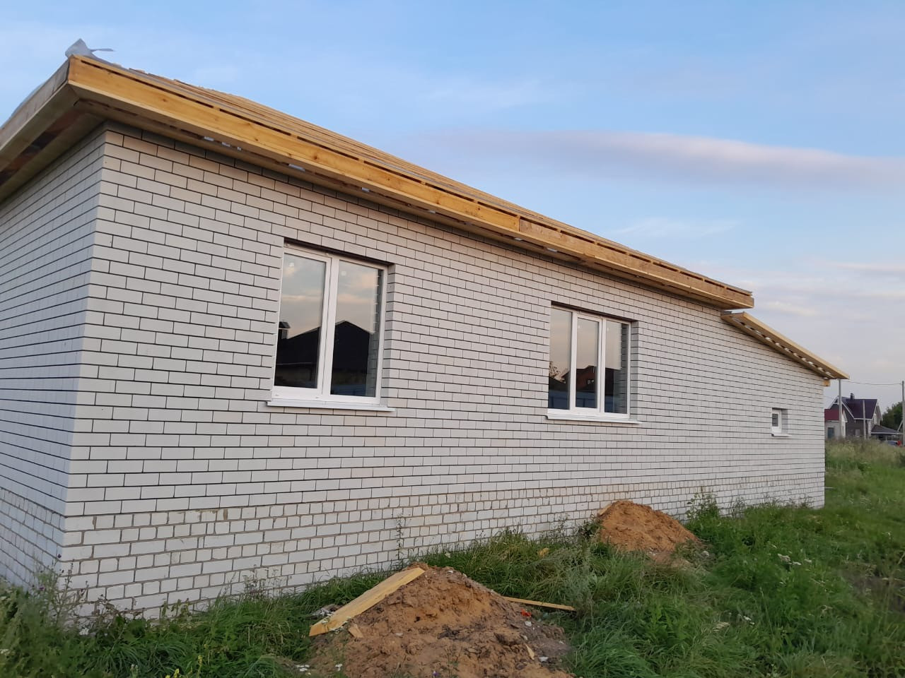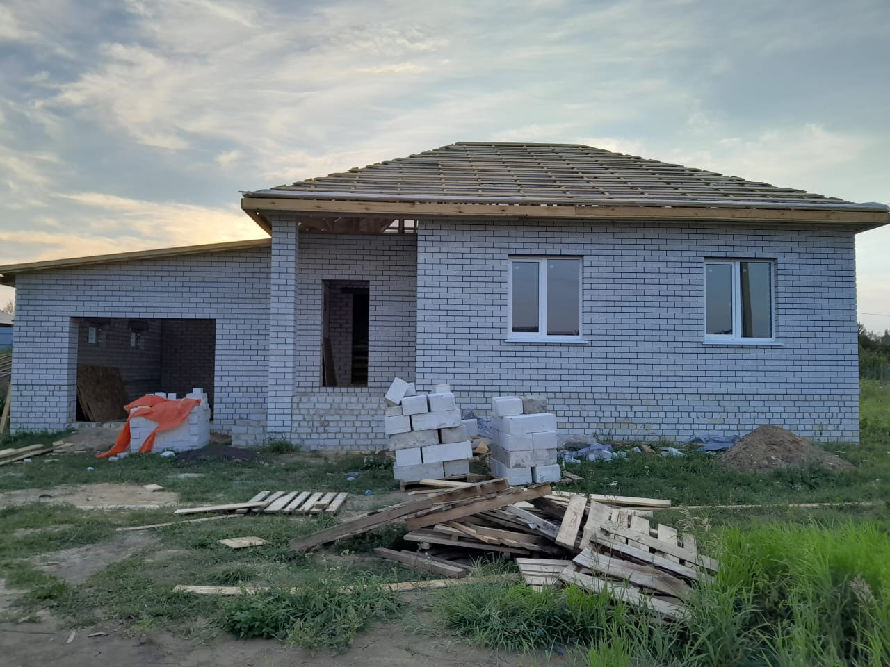 Дом сделан качественно, крыша металлопрофиль, свет подведён и разведен по всему дому,канализация, разведена. Поштукатурены стены и шпаклеваны. Потолок подшит, черновая стяжка пола, чистовая в гараже и котельной. Сложены перегородки. Качественные дорогие окна.