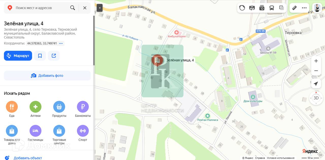Рядом протекает река Ай-Тодорка, горный ключ, в пешей доступности Терновский пруд, горная вершина Эки-Тепе. Изумительное место для жизни на природе, в окружении гор и лесов. В то же время хорошая транспортная доступность позволяет оперативно добраться до Севастополя - время в дороге до 30 минут. Остановка общественного транспорта в шаговой доступности, рейсовые автобусы до Севастополя ходят ежедневно с 6:00 до 23:00.
