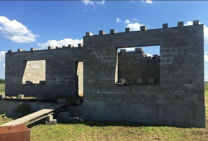 Продам земельный участок с коробкой. Площадь дома 100 кв.м., на участке 17 соток. Коробка построена в 2020 году. Стены: керамзитоблоки, бонусом мягкая кровля к дому. В доме расположены 3-спальни, гостинная, кухня, с/у раздельный, коридор. Участок ровный прямоугольный, на участке есть свет. Цена 1500 мил рублей. Один собственник.