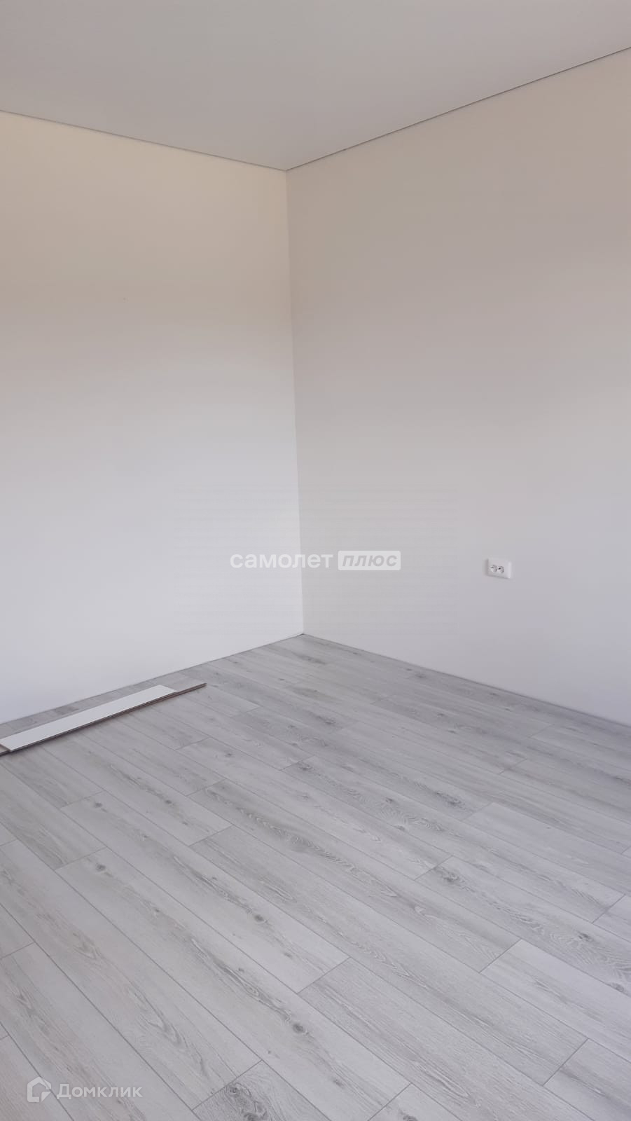 Напольное покрытие представлено ламинатом 33 класса, а в помещениях, где частый контакт с водой (общие зоны) - керамогранитная плитка.