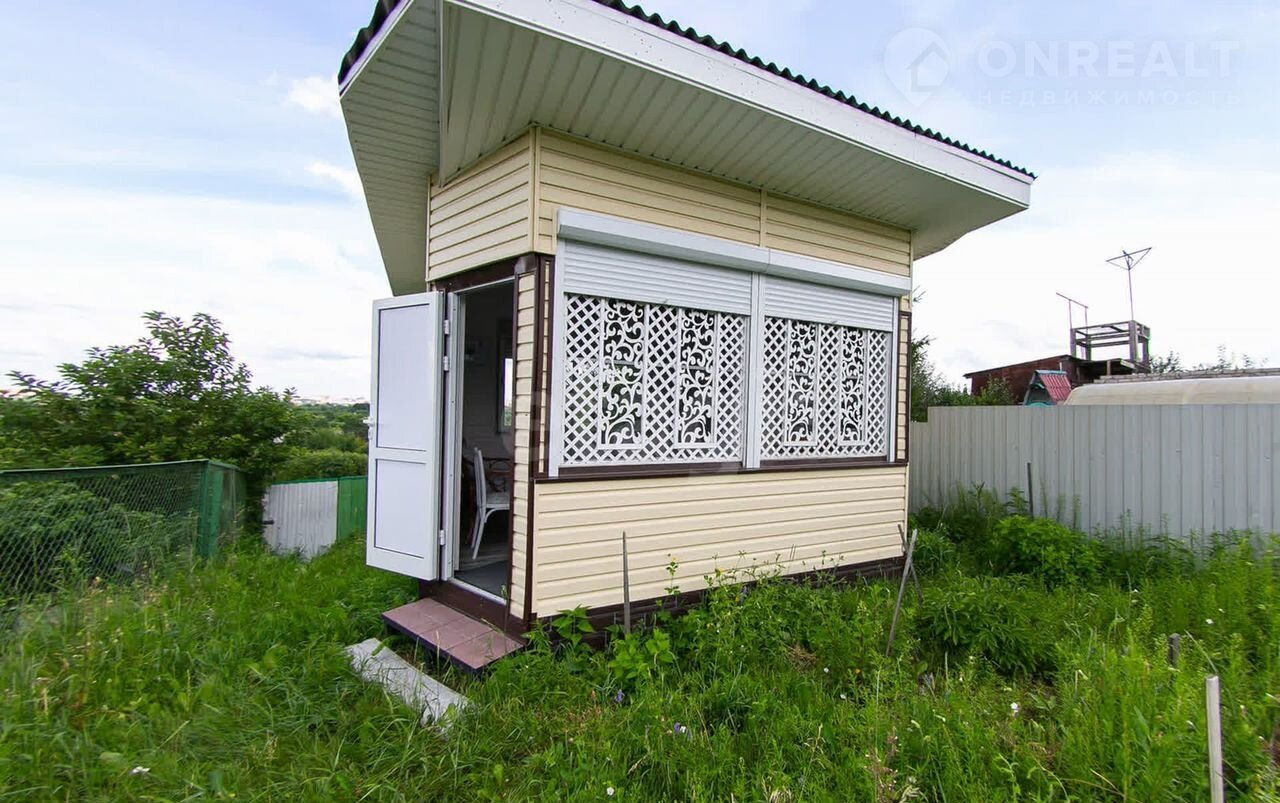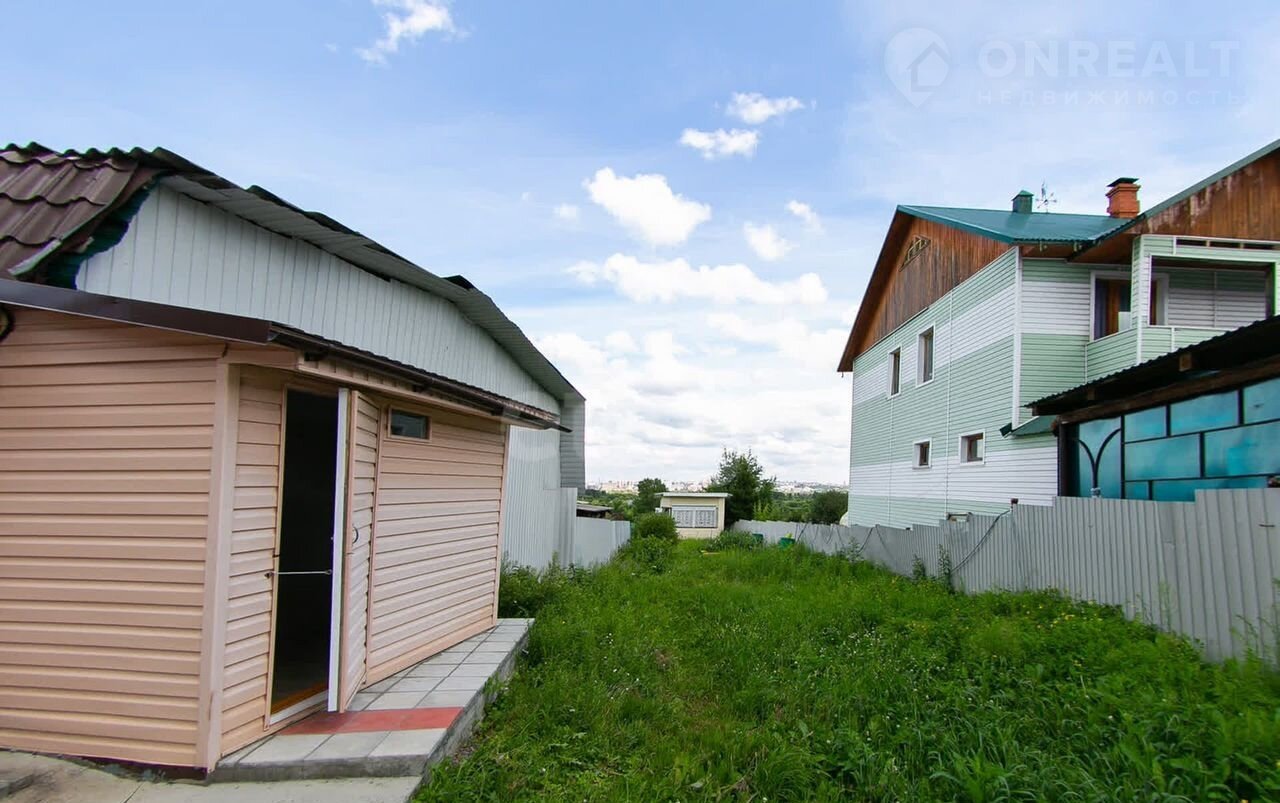 Участок благоустроен: здесь расположена комфортная крытая беседка, из которой открывается панорамный вид на город и реку, создавая идеальное место для отдыха на свежем воздухе.