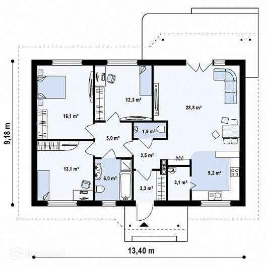 Дом 146,7 м2 с крыльцом и верандой на участке 6,7 сотки.