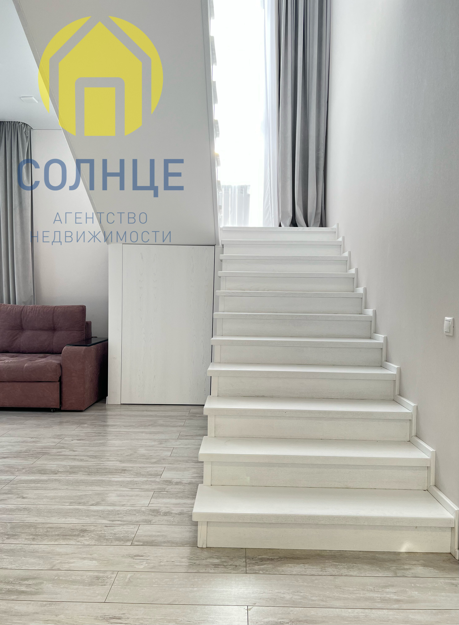 - Лестница монолитная и отделана ясенем.