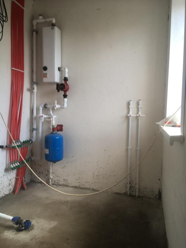 Установлен котел, электрощиток, разведена электропроводка по дому.
