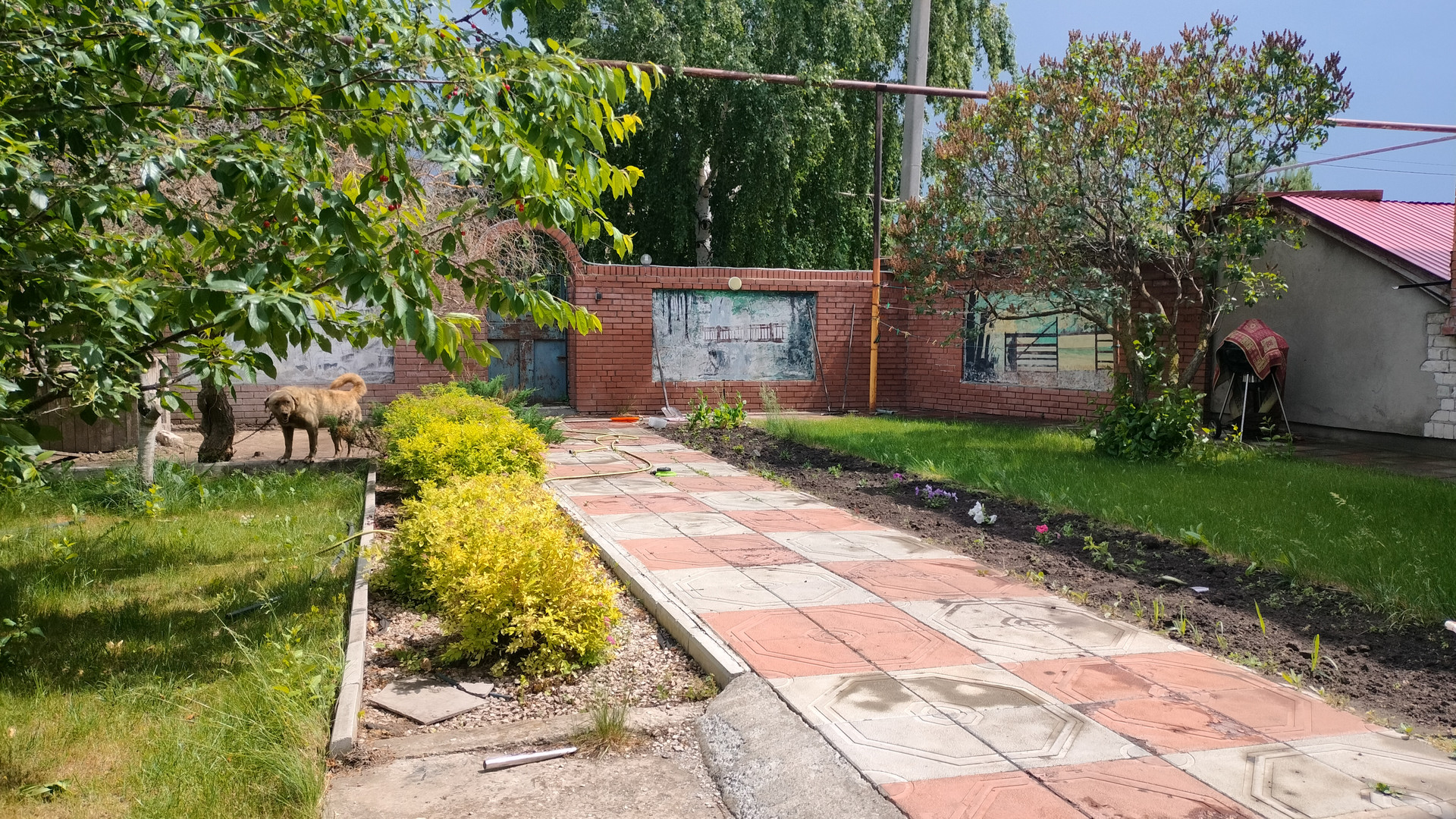 Дом кирпичный, с элементами мозайки. Крыша-металлопрофиль.