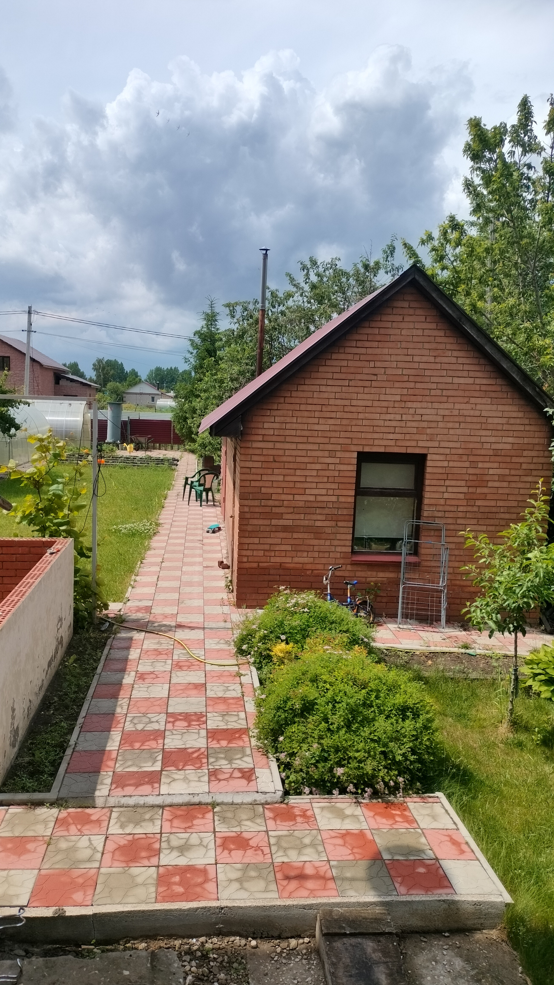 Очень ухоженный земельный участок: -высокие грядки, -дорожки, -мангальная зона, - зона отдыха, -спортивная площадка, -рокарий, -декоративные кустарники, многолетние растения, -2теплицы, а так же яблони, груша, черешня. вишня. малина, смородина, клубника.