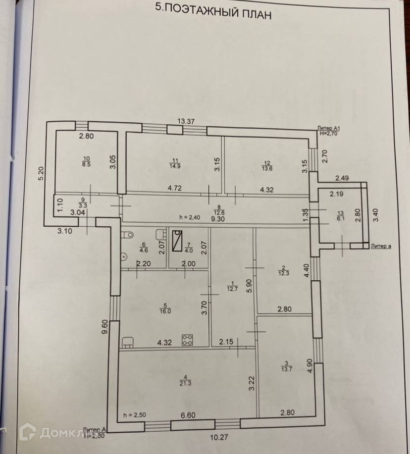 · комнаты 21.3м², 14.9м², 13.7м², 13.6м², 12.3м².