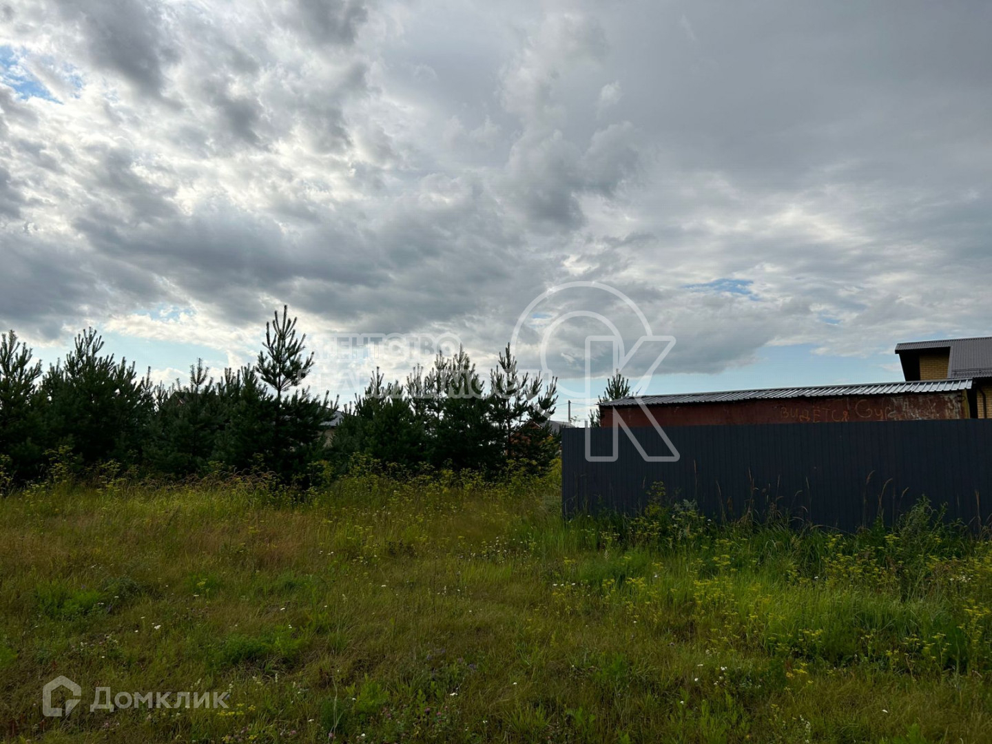 Участок 14 соток ровный , квадратной формы огорожен забором .