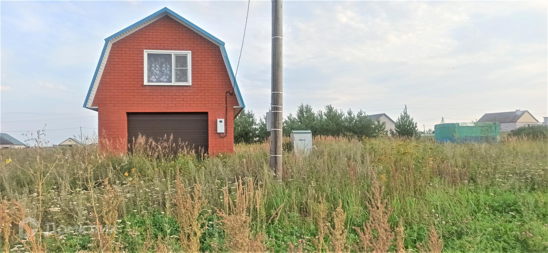 Гараж с мансардным этажом, внутри обшит, электричество заведено, можно временно жить на время постройки дома.