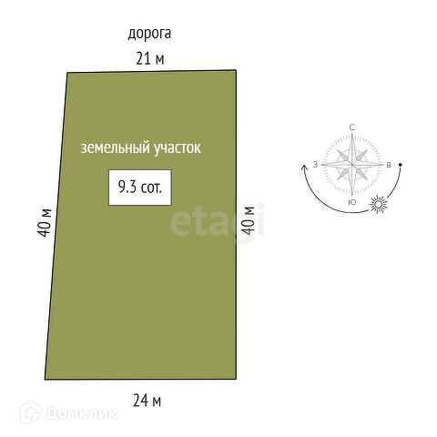Площадь участка 9.3 сот.