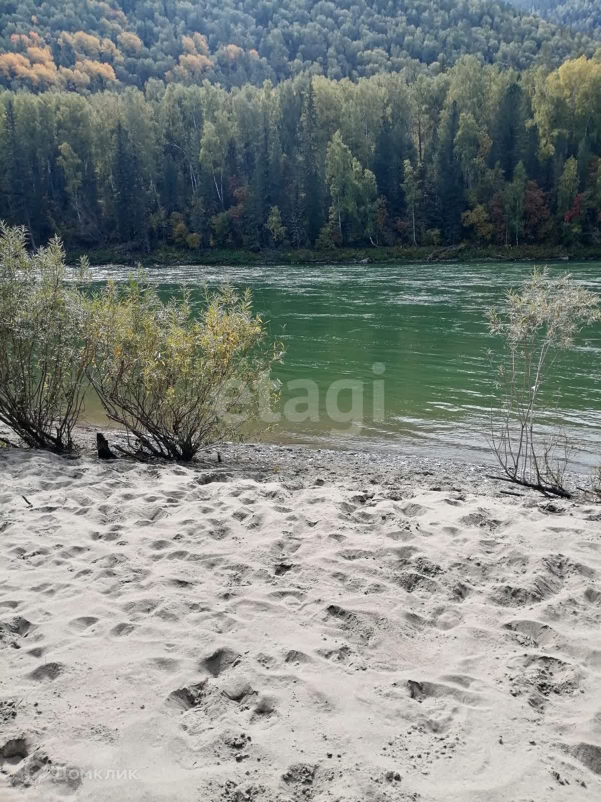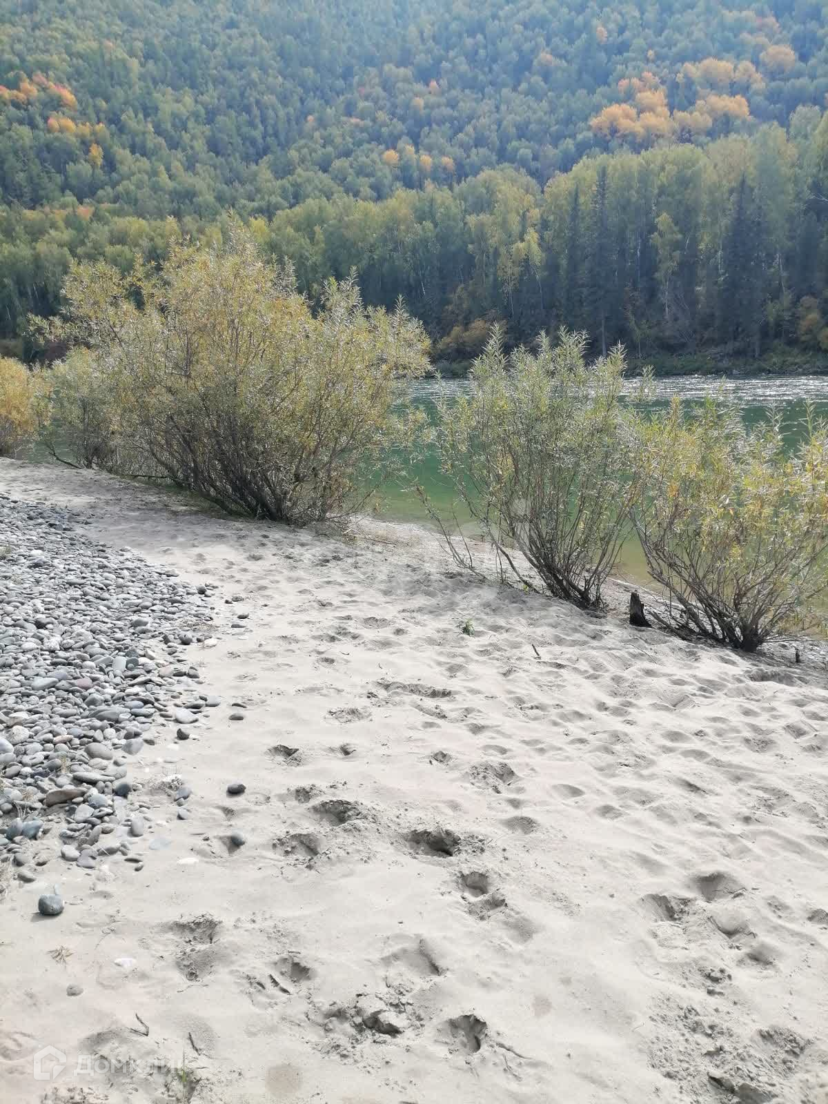Главным преимуществом участка, является его географическое расположение, находится в очень живописном месте рядом с местом Каменные бабы на берегу Катуни. В двадцати метрах от участка есть песочный пляж Голубая лагуна.