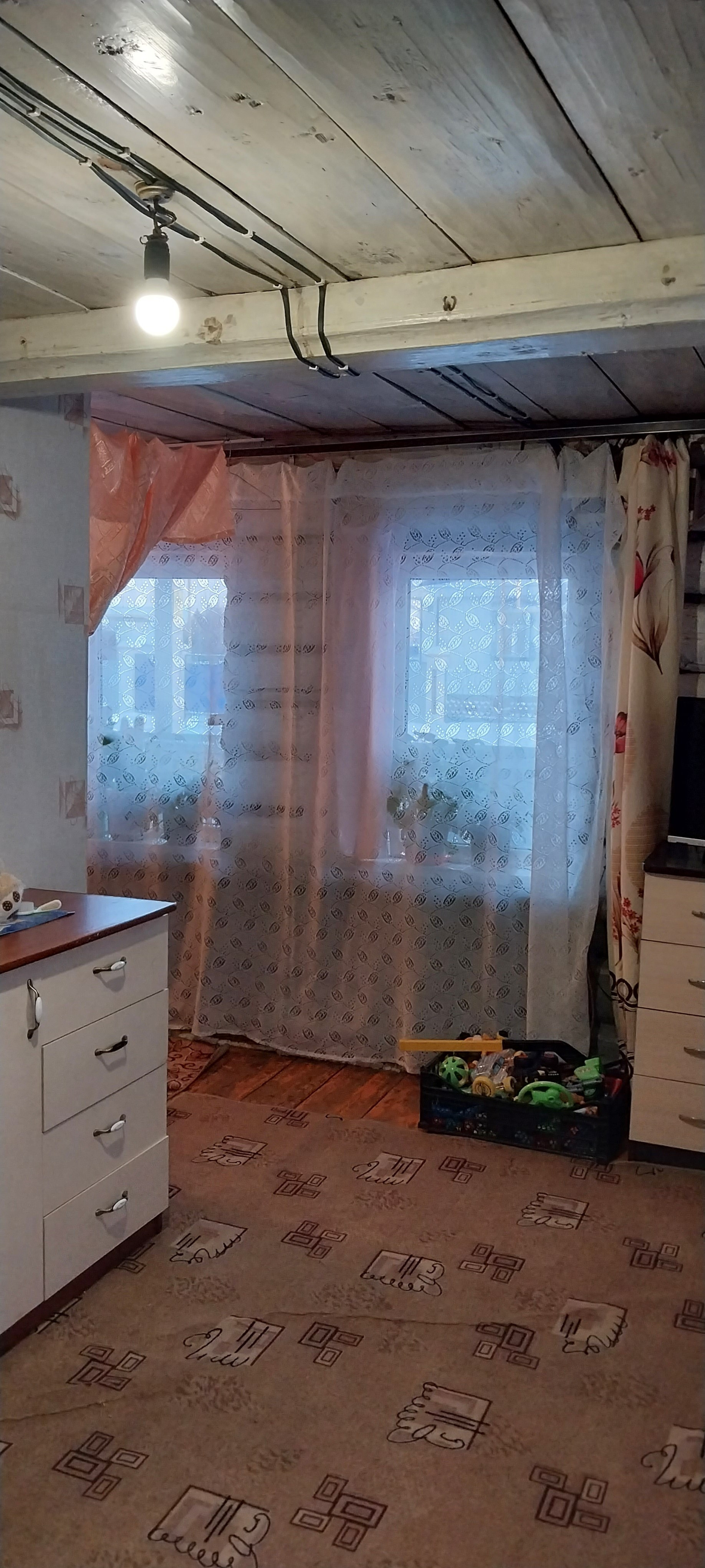Стены бревенчатого жилого дома, сохраняющие тепло зимой и прохладу летом. В доме большая комната, разделена на две зоны (спальная и гостевая), удобное расположения кухонной зоны, подведено водоснабжение, электроснабжения, все проведено для подключения газоснабжения.