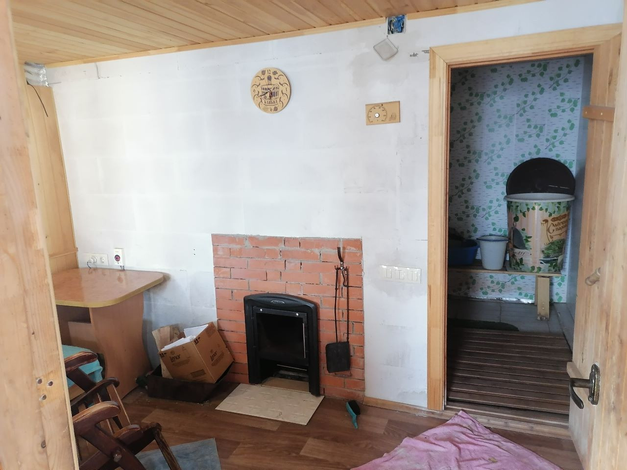 1 этаж: кухня, гостиная, спальня, санузел, кочегарка (теплые водяные полы).