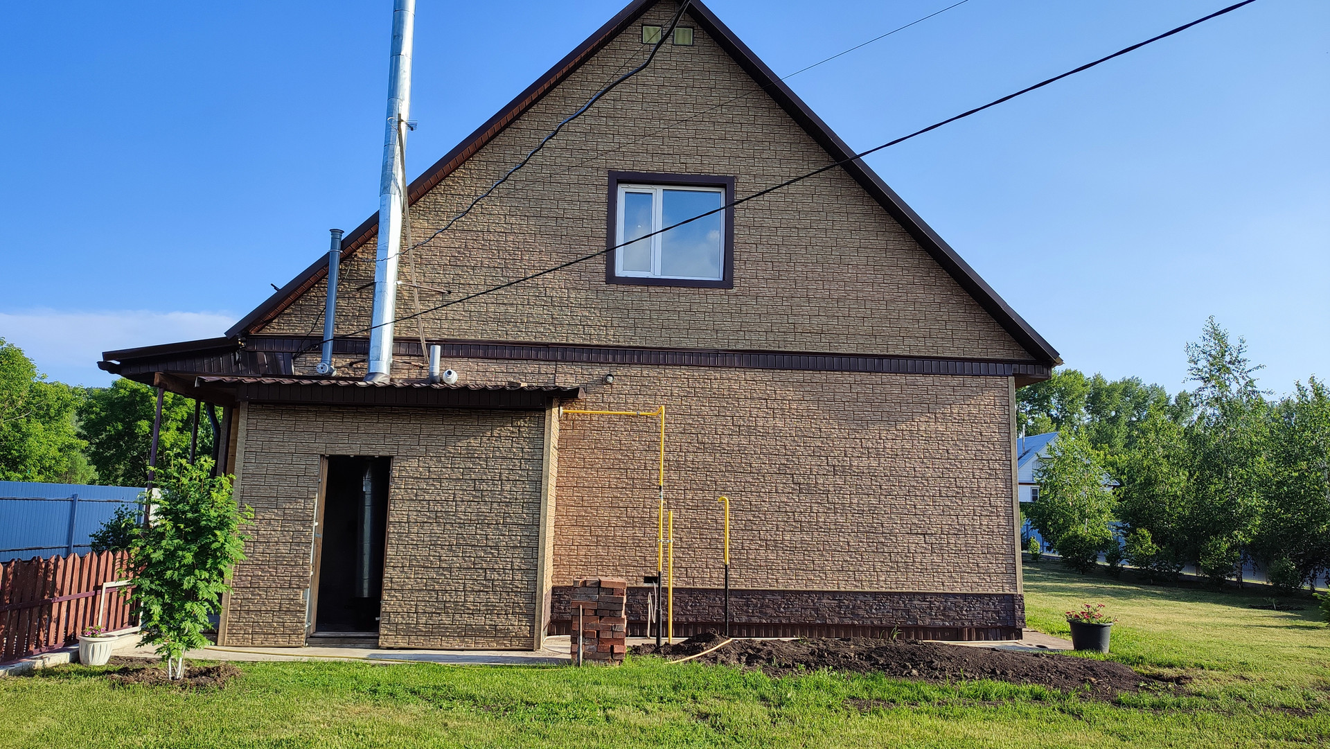 Газ подведен к дому и заведен внутрь, газовый котёл Bosch. Сейчас оформляются проектные документы, к концу месяца будет подана заявка на пуск газа.