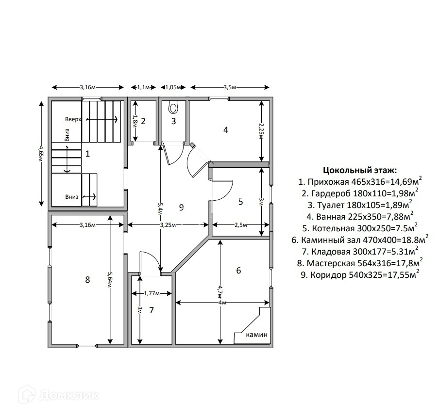 Площадь дома – 270,8 кв.м. (3- этажный).