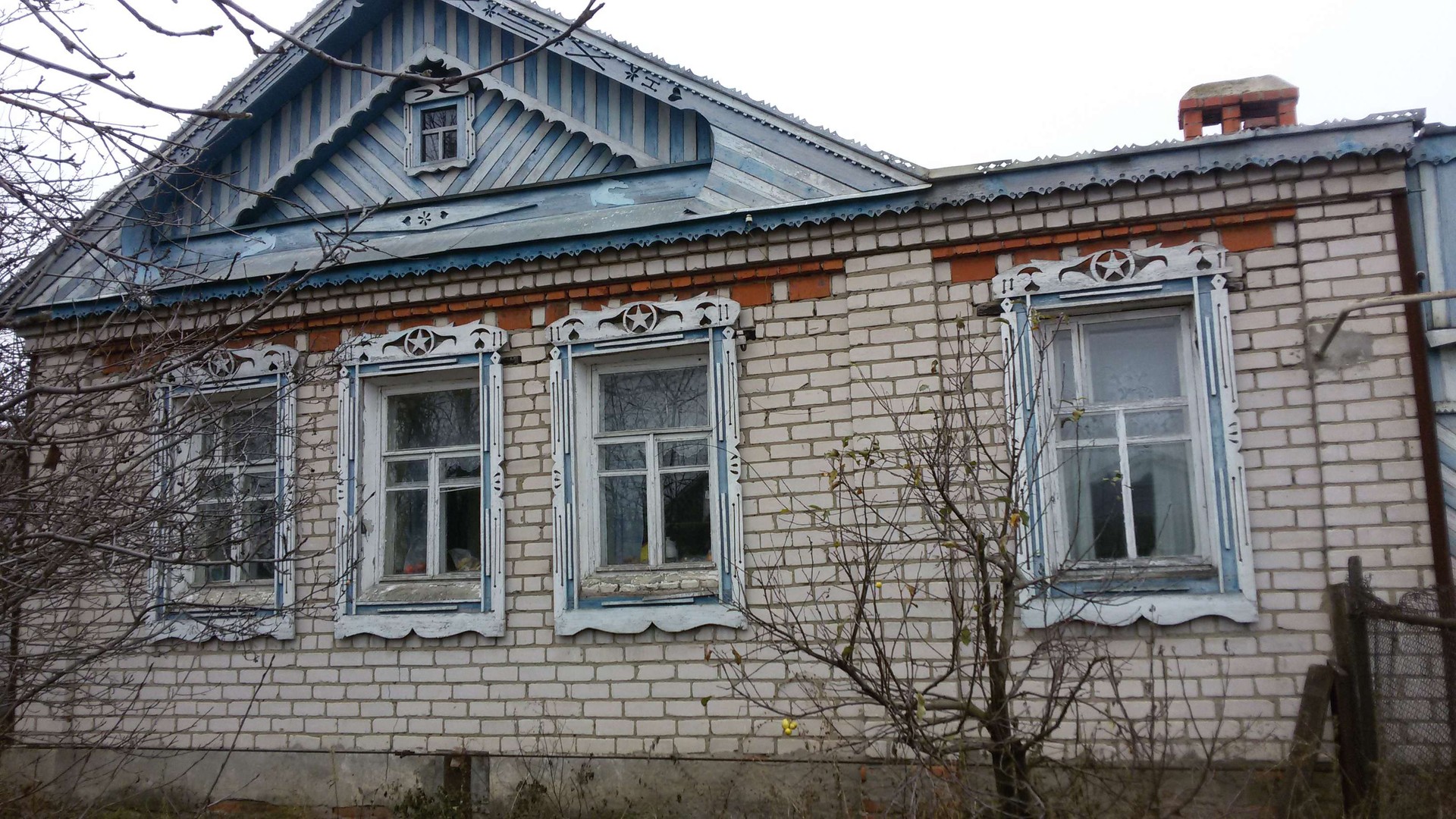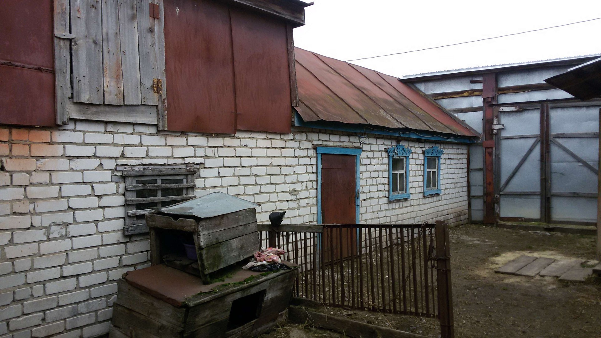 Кирпичный дом с надворными постройками на ровном месте чернозем. Газовое отопление, колодец, баня. В селе асфальтированные дороги, на машине в любое время. Магазины, школа средняя, детсад, церковь, река рядом и т. д. В доме никто не живёт.