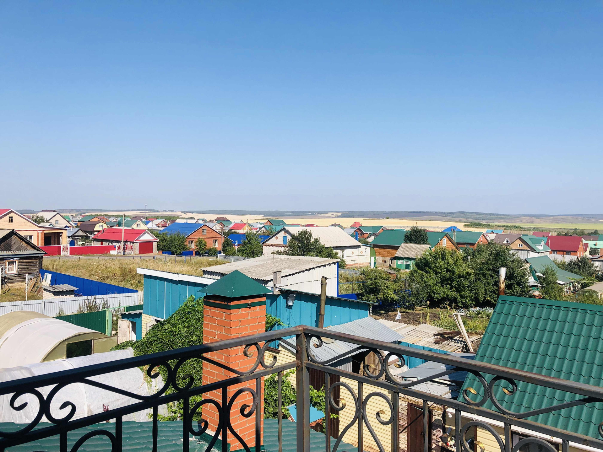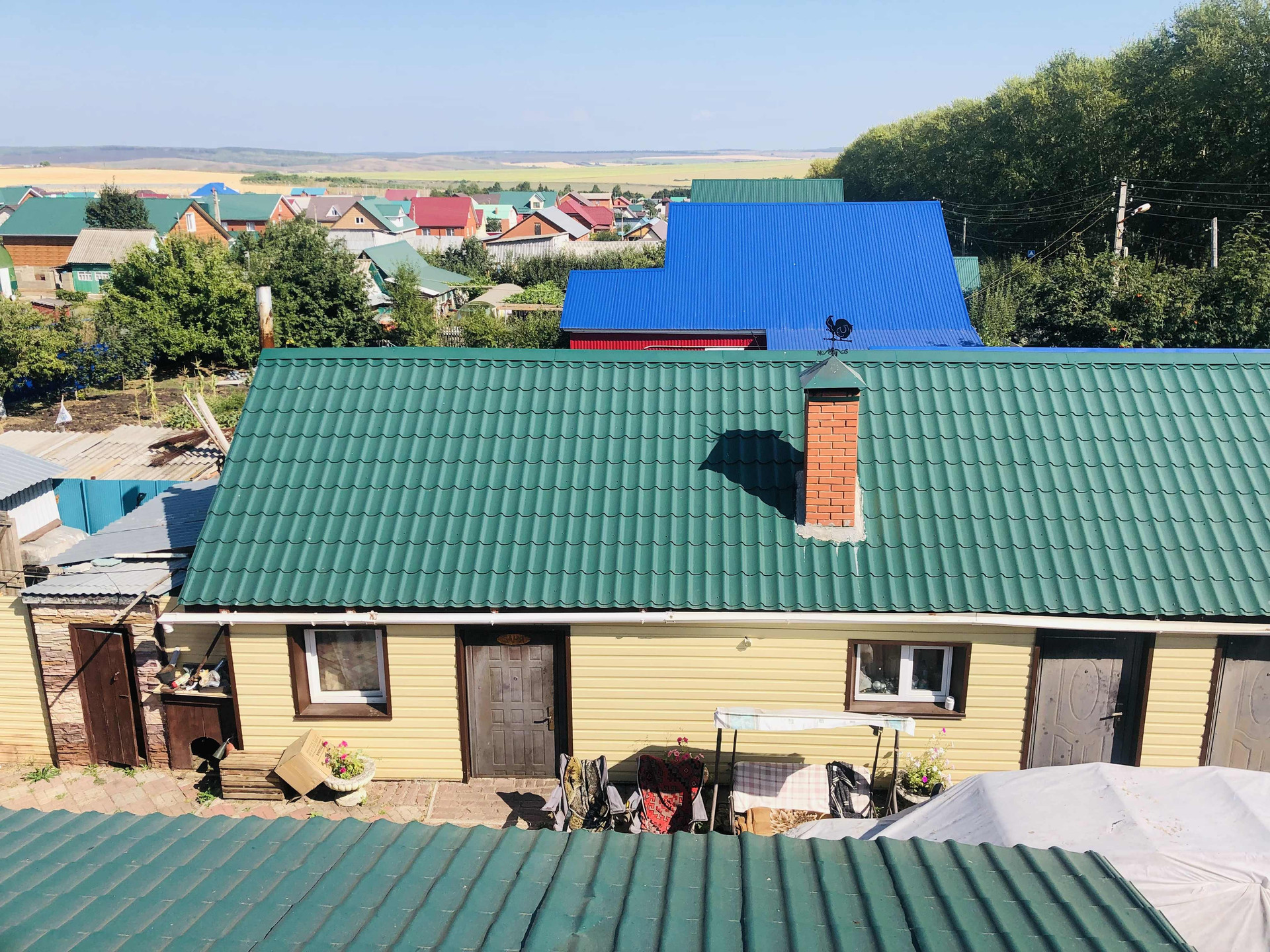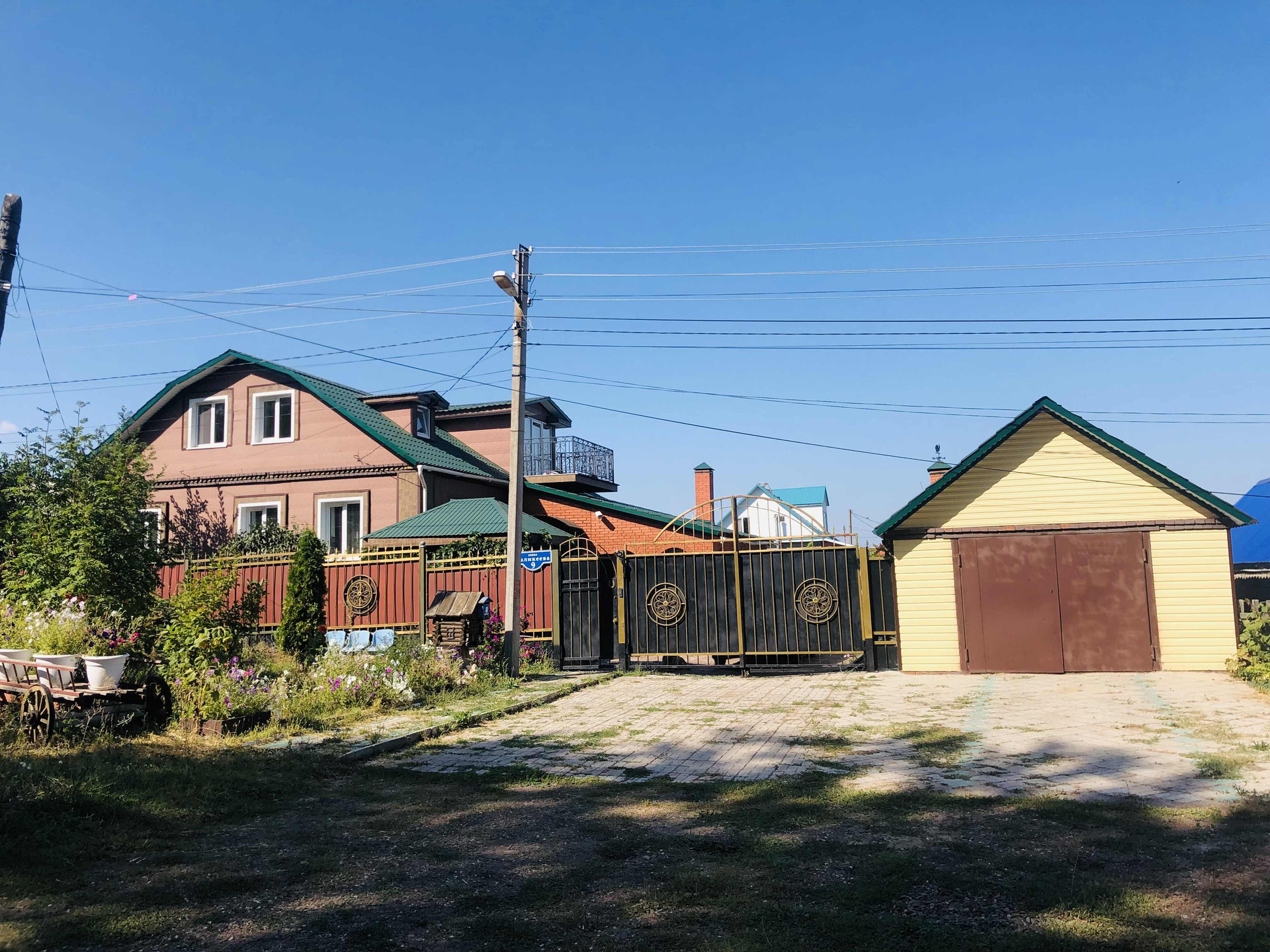 Просторная придомовая территория (с соседями напротив разделяет тополиная посадка).