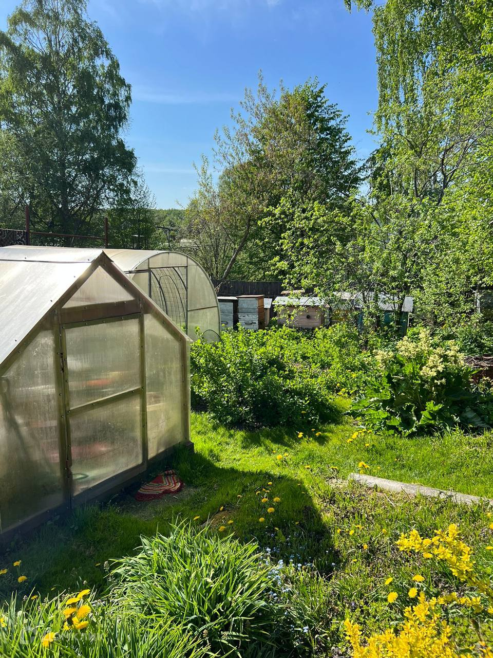 - На участке стоит баня, парники, хоз. блоки (сараи).