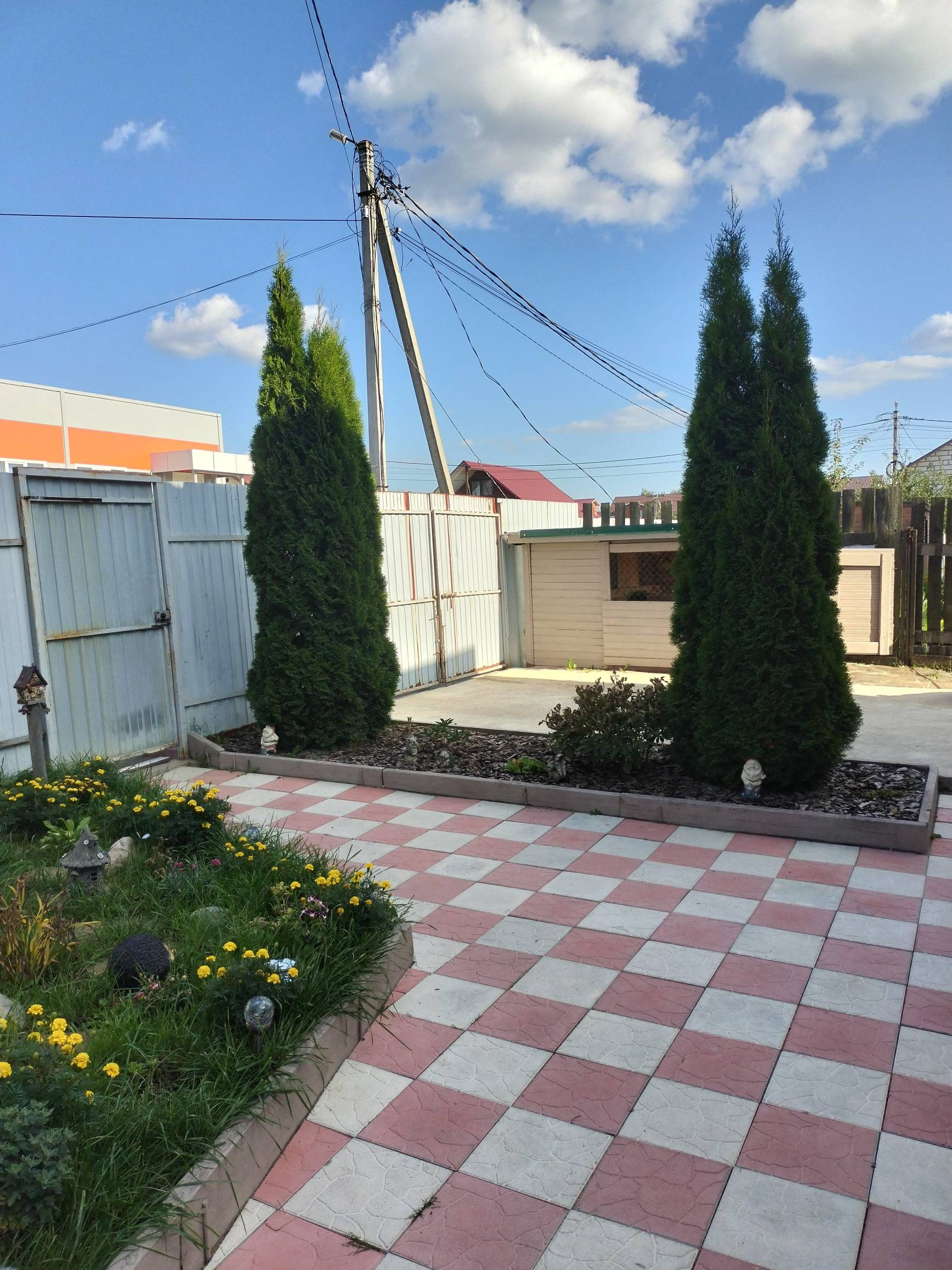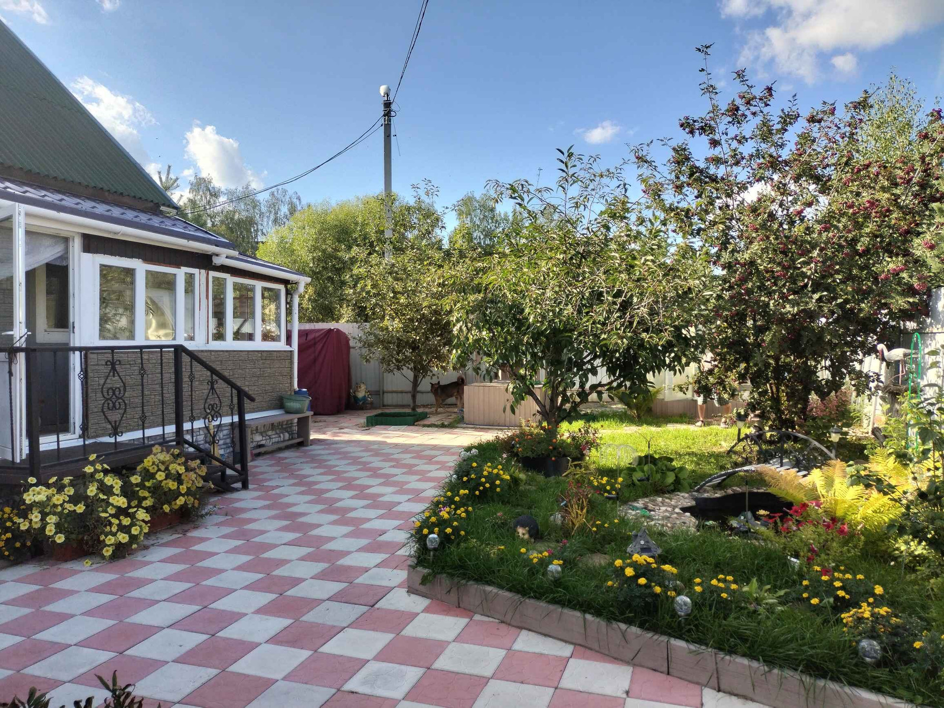 - дорожки выполнены из плитки и бетона